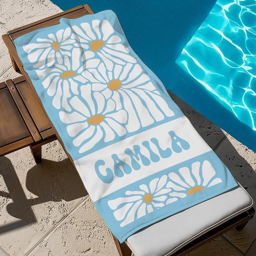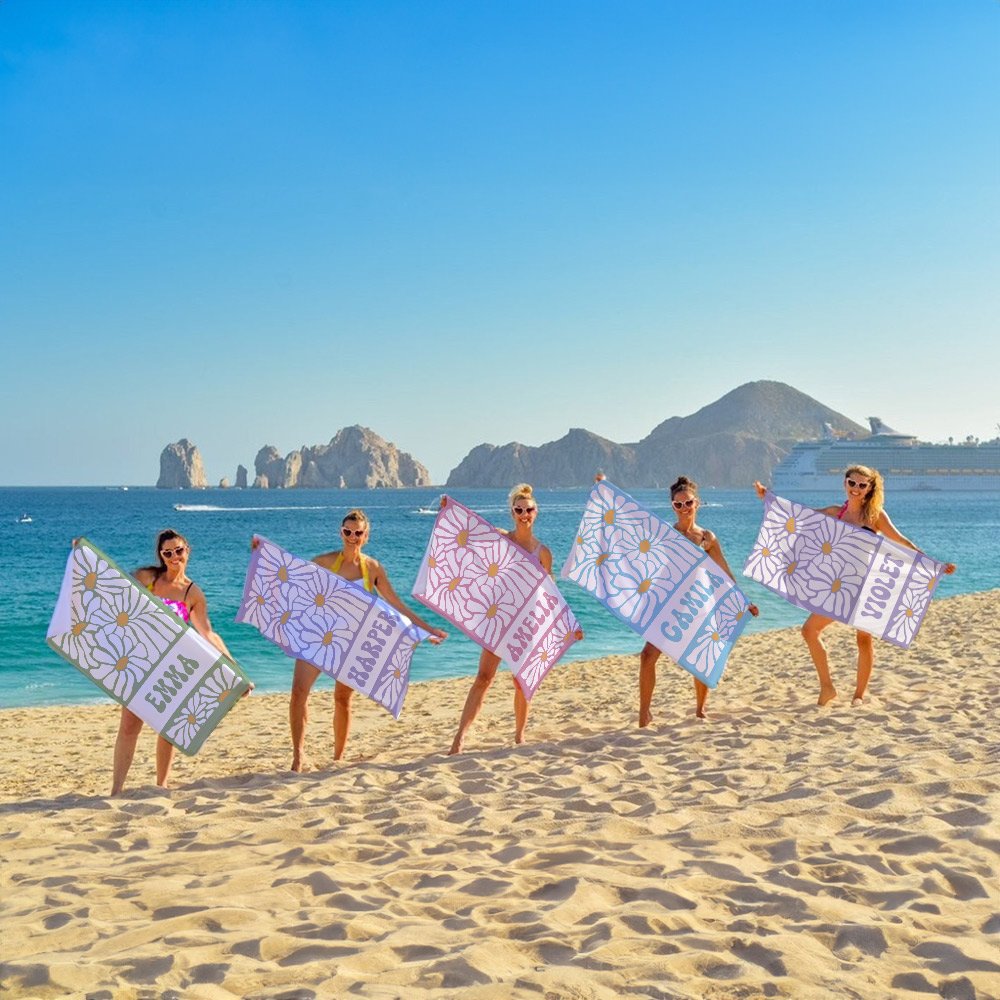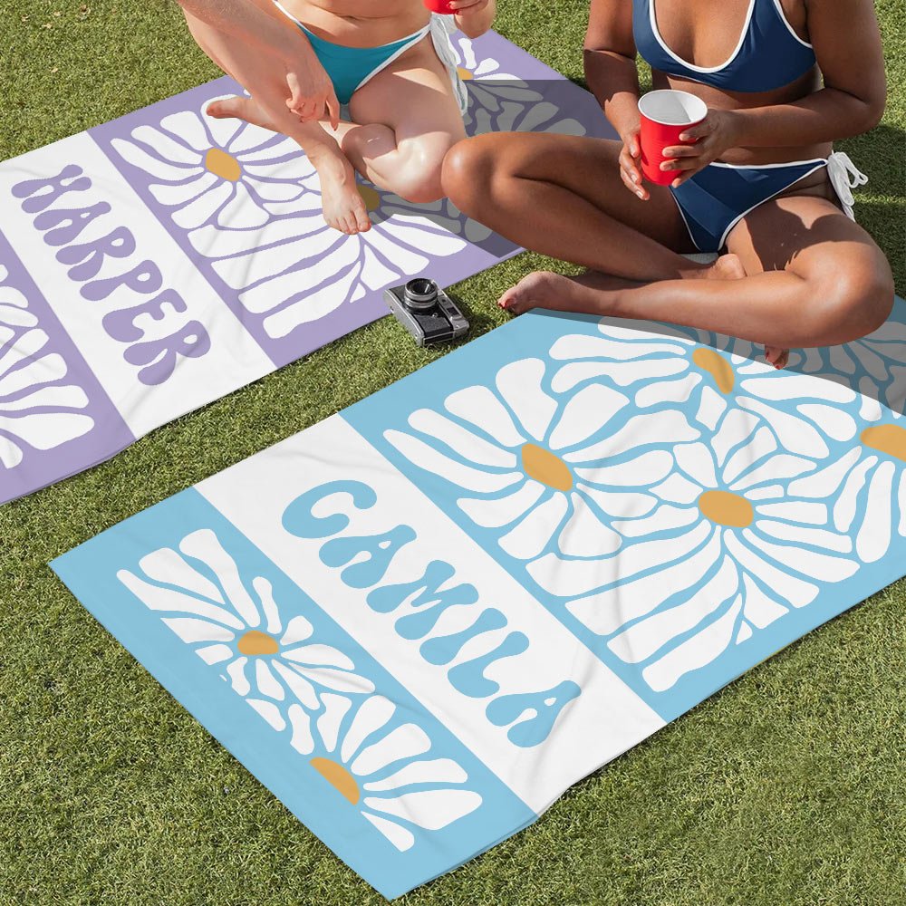 Vintage style Personalised daisy print beach towel is perfect for fashionable women who love vintage style, bridesmaids, girlfriends, friends, family, etc Whether it's for vacation, beach party, swimming pool, or holiday travel I believe it will be the perfect companion.