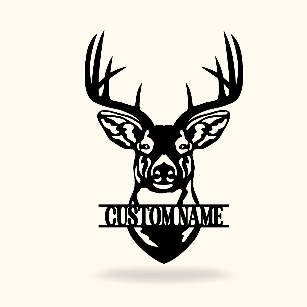 The metal sign features a striking deer head design with intricately detailed antlers, creating a bold and eye-catching focal point for any room. The personalised touch of adding a name to the sign makes it truly unique and special for the recipient Whether you want to display your family name, a special word, or a meaningful date, the customization adds a personal touch. The name is expertly cut into the metal, adding an extra layer of detail to the design.