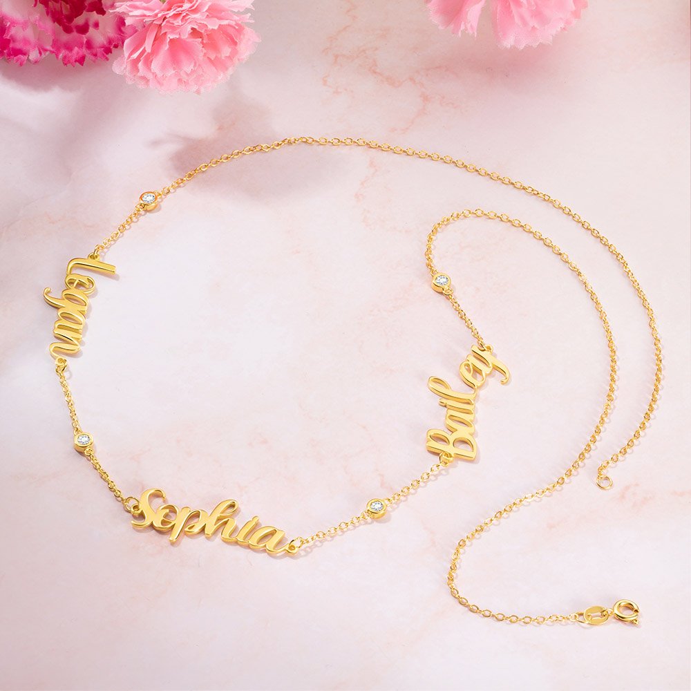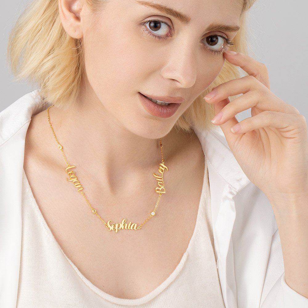 Sparkling zirconia stone has been added as an accent to the initial name necklace, giving it a premium look and a beautiful, eye-catching finish. Available in one, two, and three-name necklace options, this is a great gift for a lady to show off her charm and class.