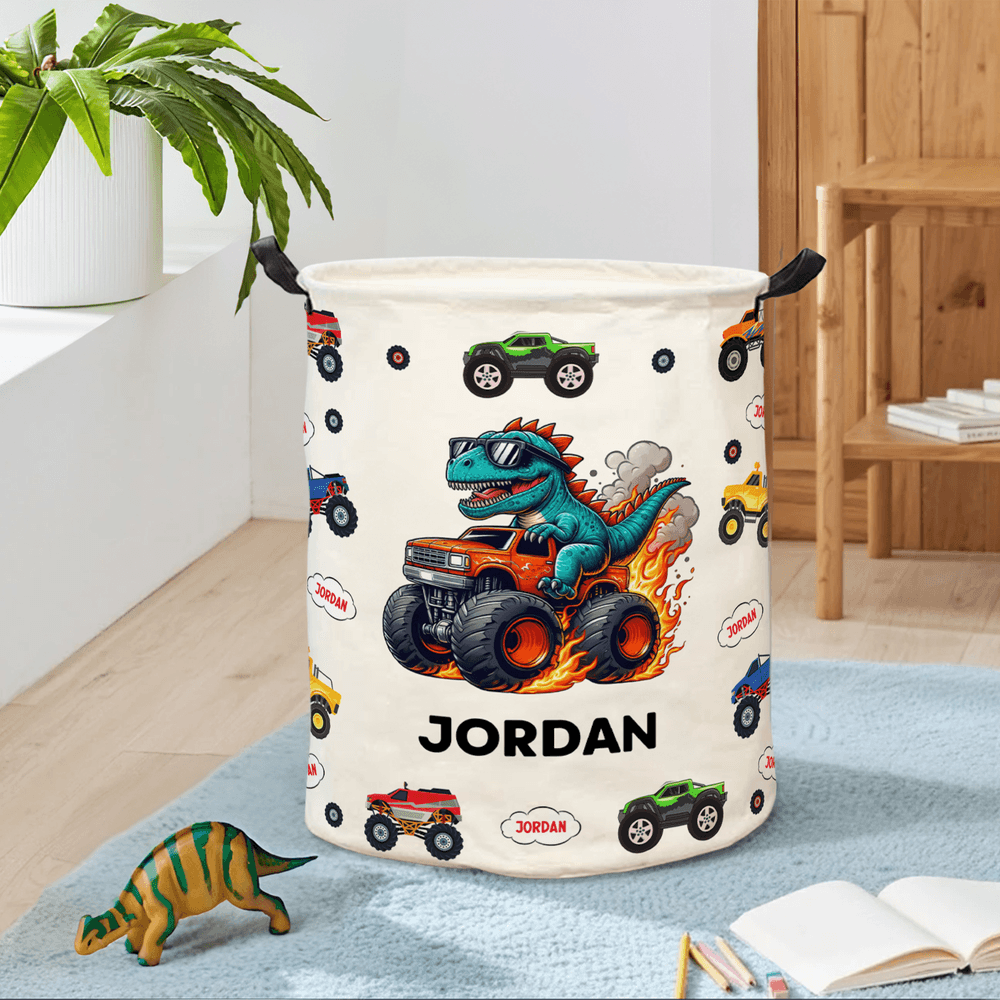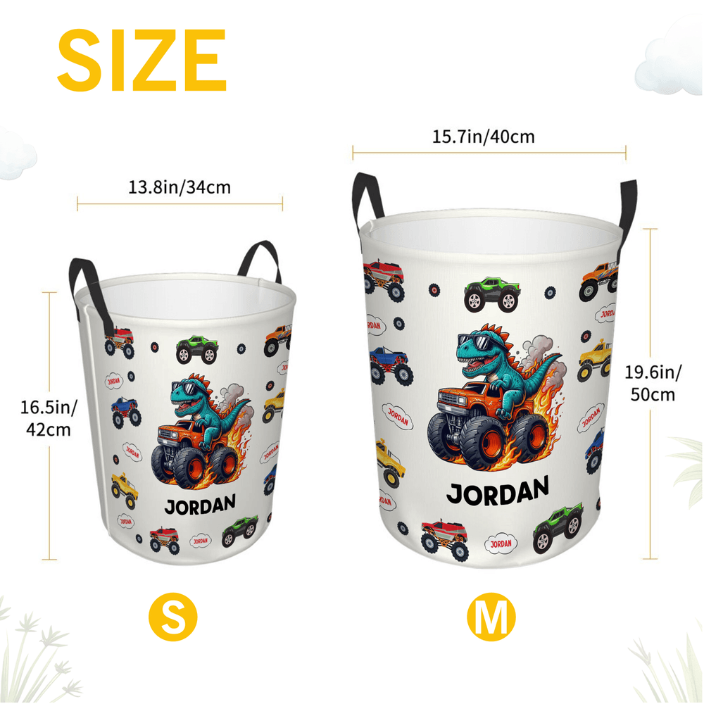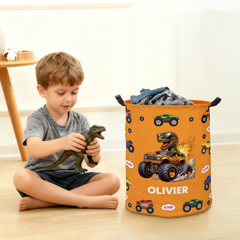 Personalised Dinosaur Lorry Large Capacity Laundry Basket with Name Birthday Christmas Gift for Boys Dinosaur Lovers
