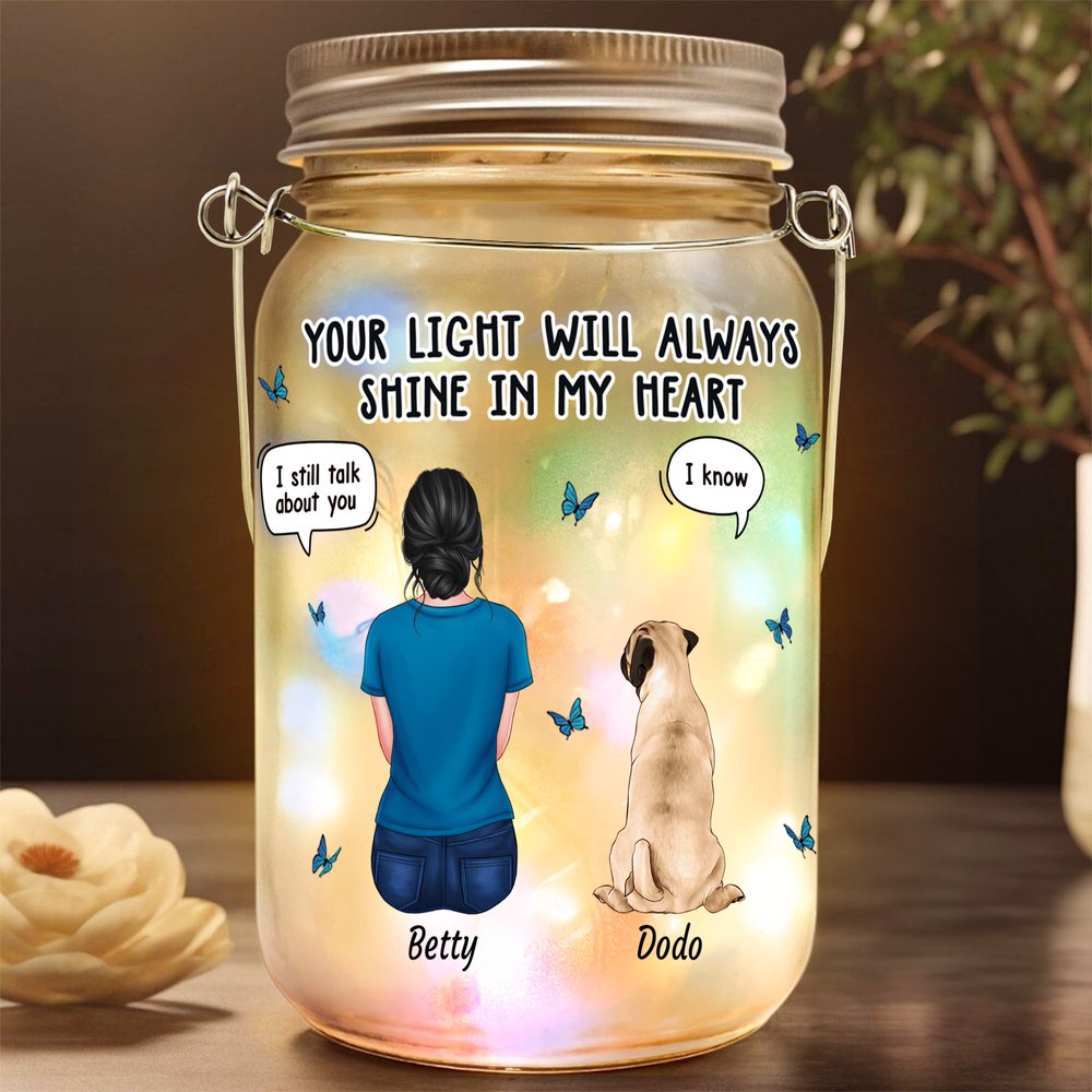 This commemorative illuminated mason jar is meticulously crafted from high-quality materials, boasting a durable jar body and a smooth, refined finish. The high-quality light components provide a stable, soft, and eye-friendly glow, ensuring long-lasting durability. Strict control is exercised over every detail of craftsmanship and overall quality, ensuring each jar is a premium item that will be a long-lasting companion for pet lovers.