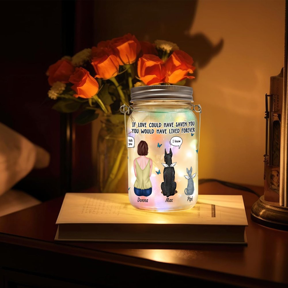 Personalised Dog Cat Pet Angel Wings LED Mason Jar Light with Name and Title Sympathy Sentimental Gift for Pet Owners Lovers
