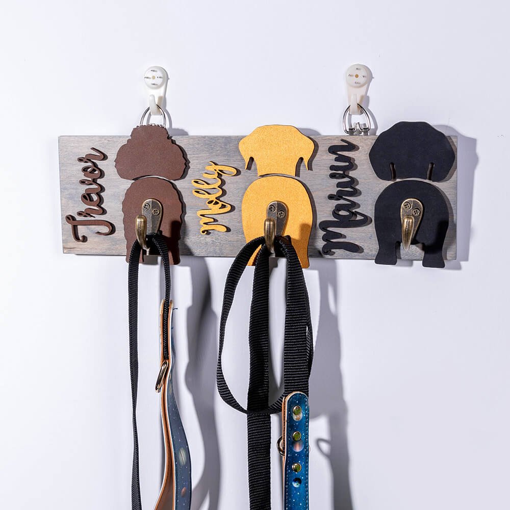 Decorate a space on the wall for your dogs with this customized leash holder. Thicken Wooden board will have more sense of ages when time passing by and dogs growing older. The hooks on the board are inspired by dogs’ cute tails. You can custom the picture of dogs according to the breeds of dogs.