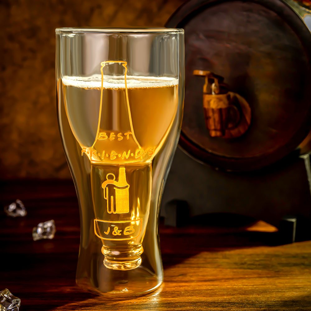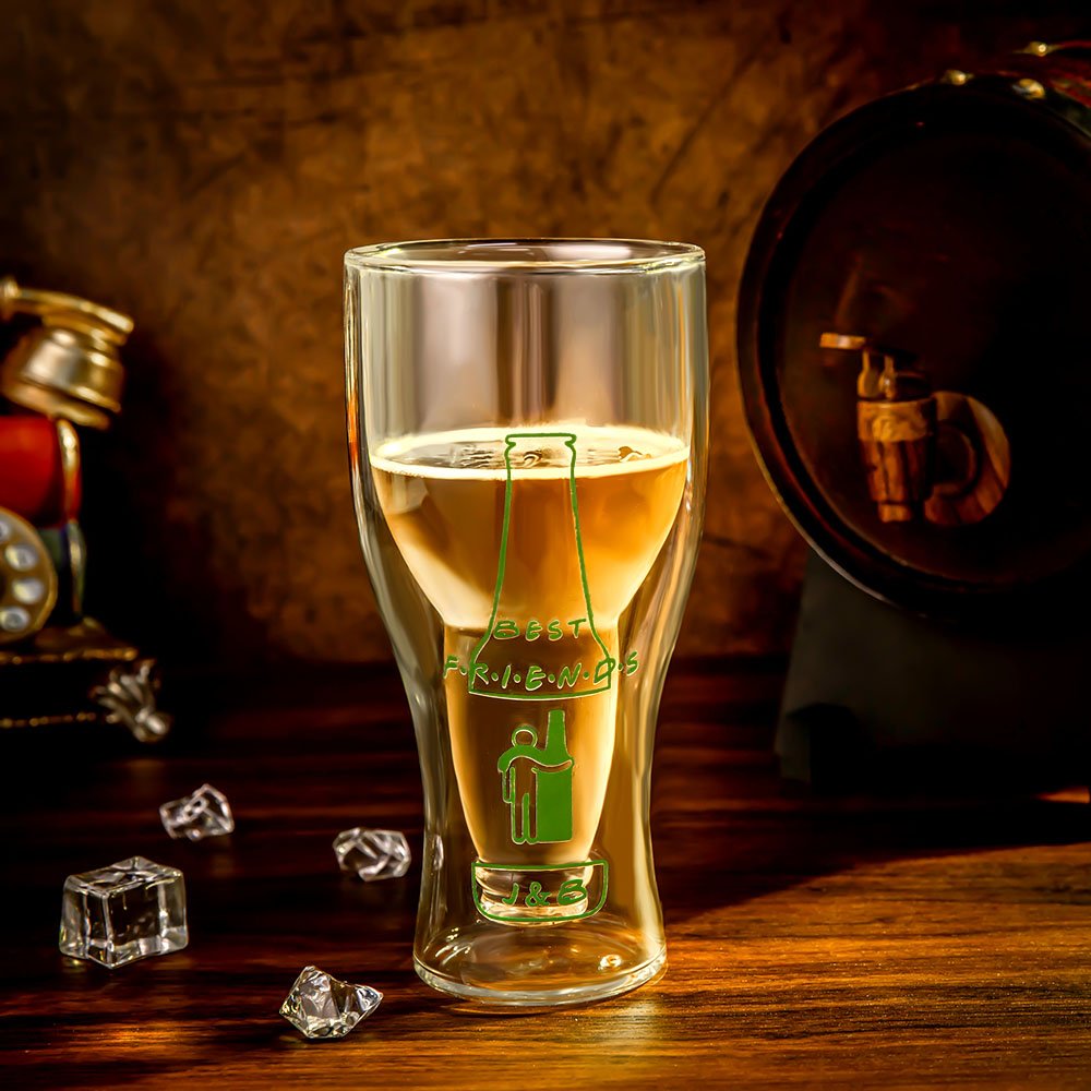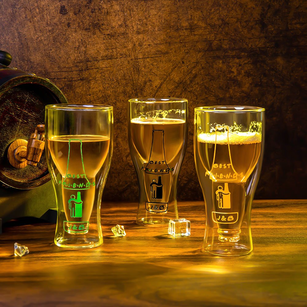 • A unique beer mug is provided by Callie. The design is modern. A person's icon is combined with beer. For those who like to drink, beer is like their friend. At the same time, the designer combined the shape of the beer bottle and the design drawing on this cup, specifically for people who like to drink. This cup is made of double-layer glass. This structure not only provides the effect of heat insulation, but also keeps the temperature of hot drinks longer, and can keep cold drinks cool. The temperature range that can withstand is -20°-100°.