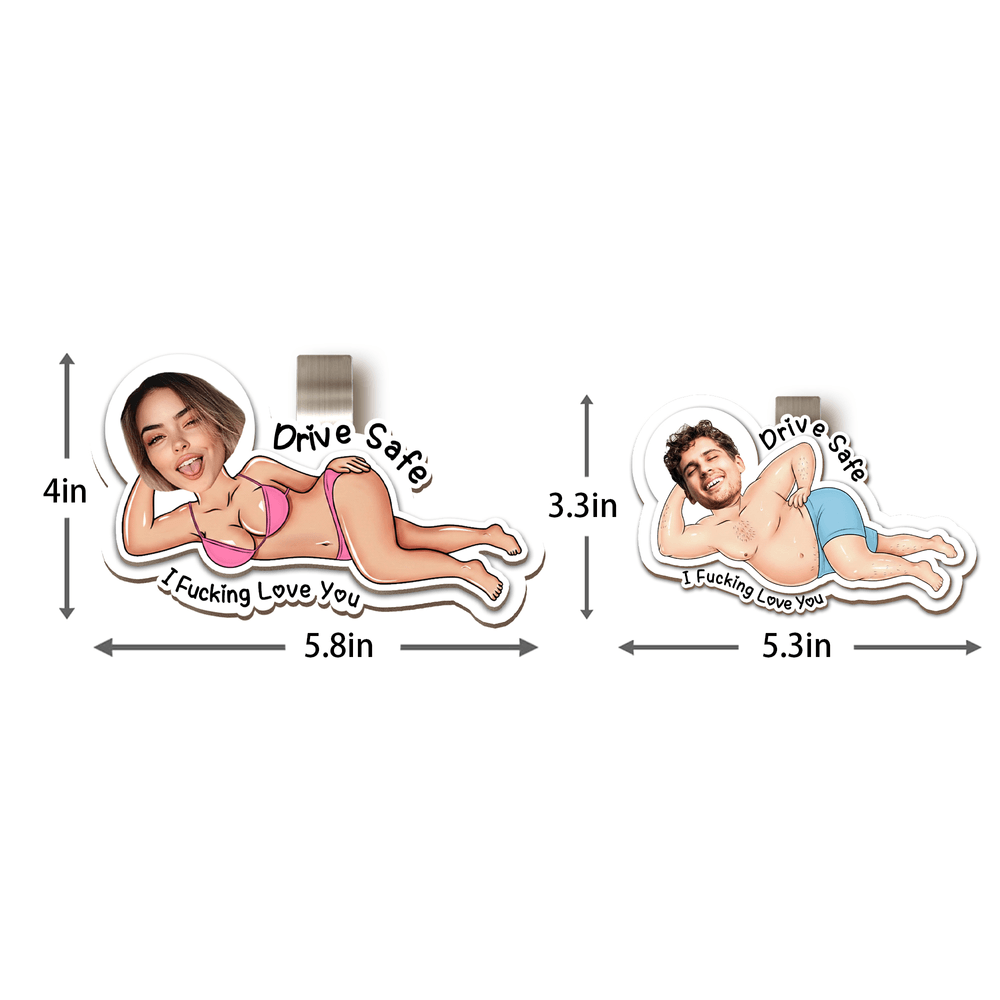 This car sun visor clip features a fun retro style with cartoon characters and eye-catching, quirky text such as "Drive safe" and "I Fucking Love You." You can fully customize it, replacing the cartoon character's image with a photo of your partner, friend, or lover to make it a unique and fun keepsake, adding humor and romance to every drive.