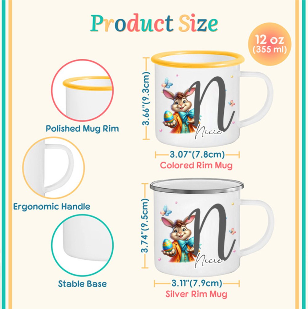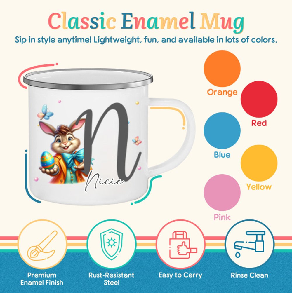 Features an adorable bunny illustration paired with a customizable name and initial, creating a cheerful Easter-themed look that feels playful, warm, and personal. The cute design makes every drink more enjoyable for both kids and adults.