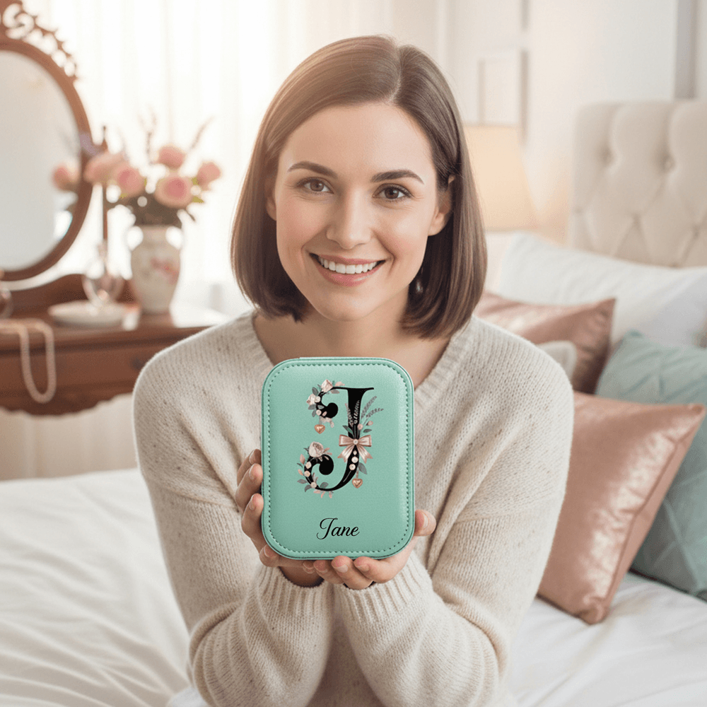 This jewellery box features an elegant floral initial design, with roses and satin bows wrapping around a bold initial. Paired with a customizable name, it blends vintage aesthetics with personalization, making every detail a statement of unique taste.