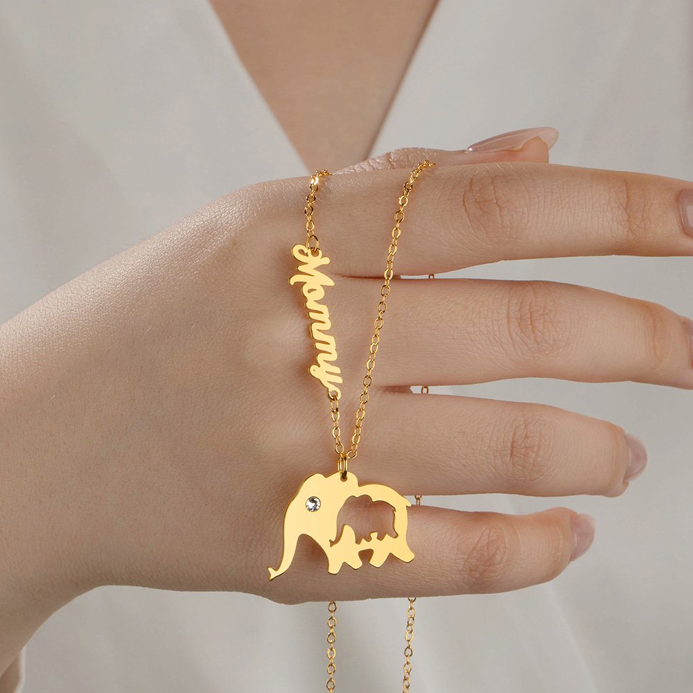 Celebrate the unbreakable bond between mother and child with this beautiful set of Personalised elephant necklaces, which includes a mother elephant necklace and multiple child elephant necklaces. The centrepiece of the necklaces is a mother elephant and a baby elephant, symbolizing love, protection, and connection. Each necklace can be customized with a name and a dazzling birthstone, making it a truly unique and meaningful keepsake for every family.