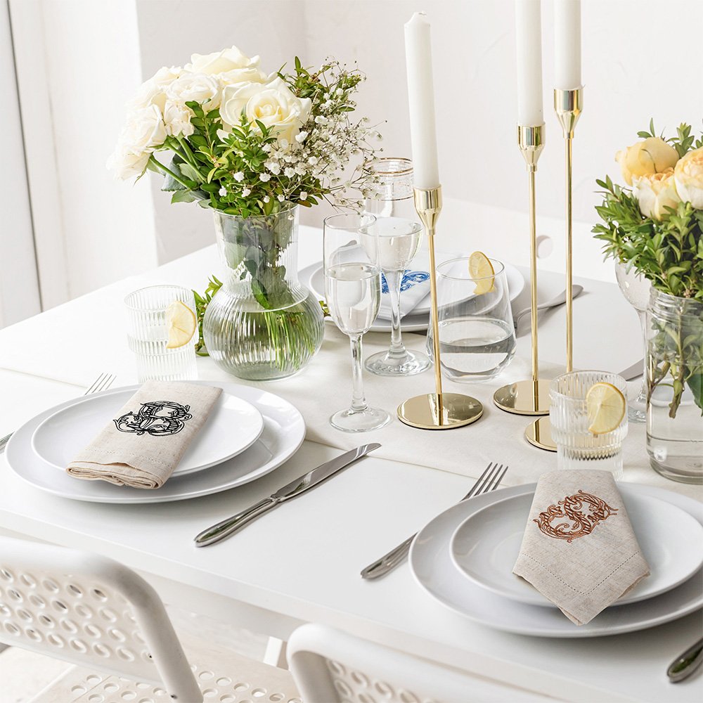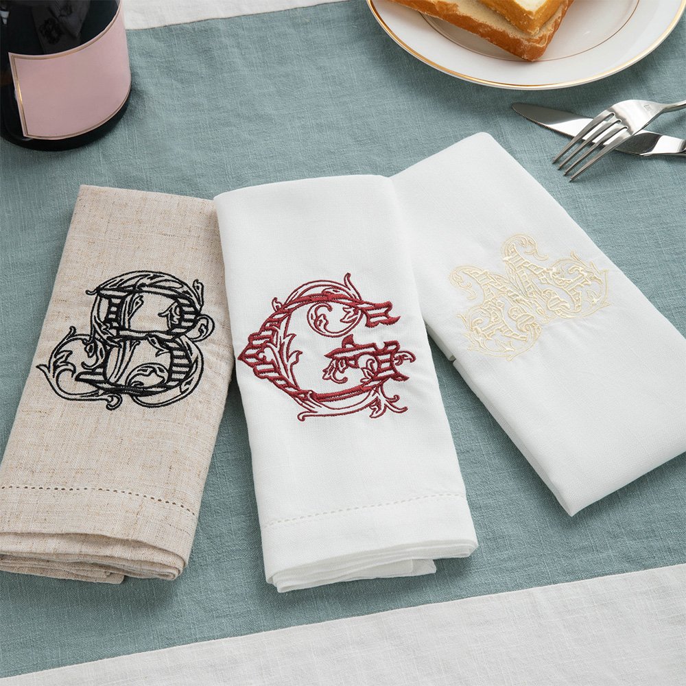 This napkin features an artistic initial design with a floral pattern and superb embroidery, which fully demonstrates an elegant and sophisticated style. You can customize the initials according to your needs to create a unique table decoration.
