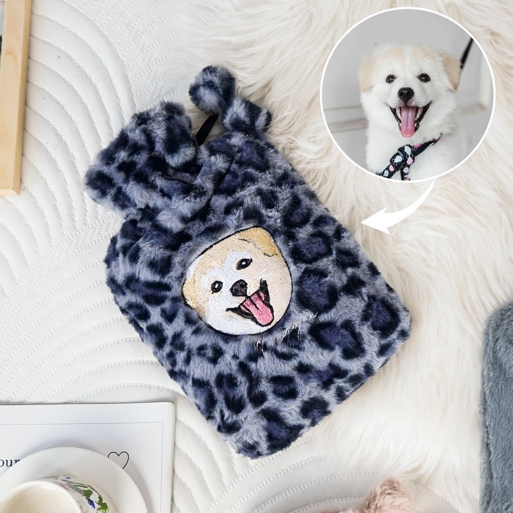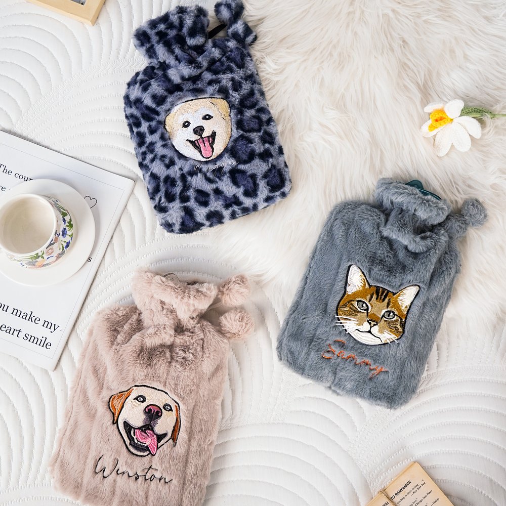 Upload a photo of your pet, and we’ll bring them to life with delicate embroidery on this hot water bottle. Add a custom name to keep your beloved companion close to you at all times. With 10 bottle colours and 15 embroidery colour options, you can create your perfect match. The soft plush fabric combined with refined stitching offers both style and personality—each piece is one of a kind, adding a uniquely warm touch to your winter.