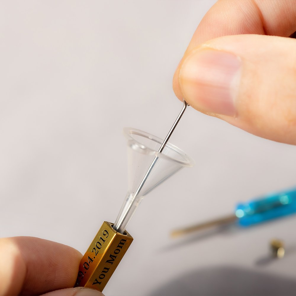 1. Do not immerse or submerge the parts in water or any other chemicals. 2. Package will come with a set of filling tools. 3. We recommend that you permanently seal the pendant with a water-insoluble adhesive.