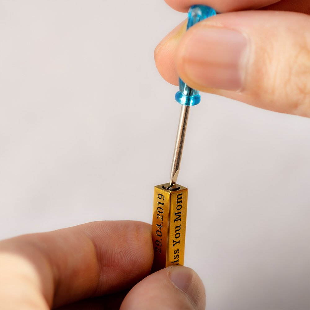 This cremation jewellery is perfect to memorialize your loved one forever and keep your loved one close to your heart at all times. You can be engraved with a beloved's name or date as well as any love message, it is a unique gift to help remember the passing of a loved one forever.