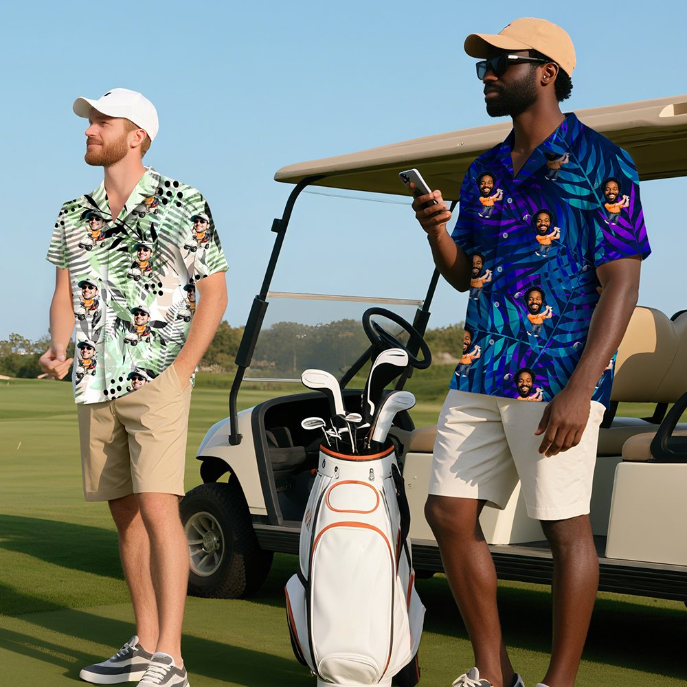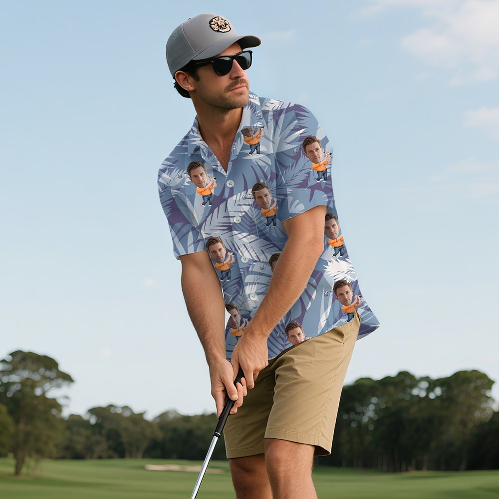 This golf short-sleeved shirt features a custom avatar design and is available in a variety of Hawaiian colours, perfectly blending your personal golf imprint with Hawaiian style. The rich colour selection not only shows the relaxation and vitality of the tropical style, but also makes each short-sleeved shirt full of personality. The clever combination of cartoon images and photos is both humorous and cute, adding a touch of fun and uniqueness to your outfit.