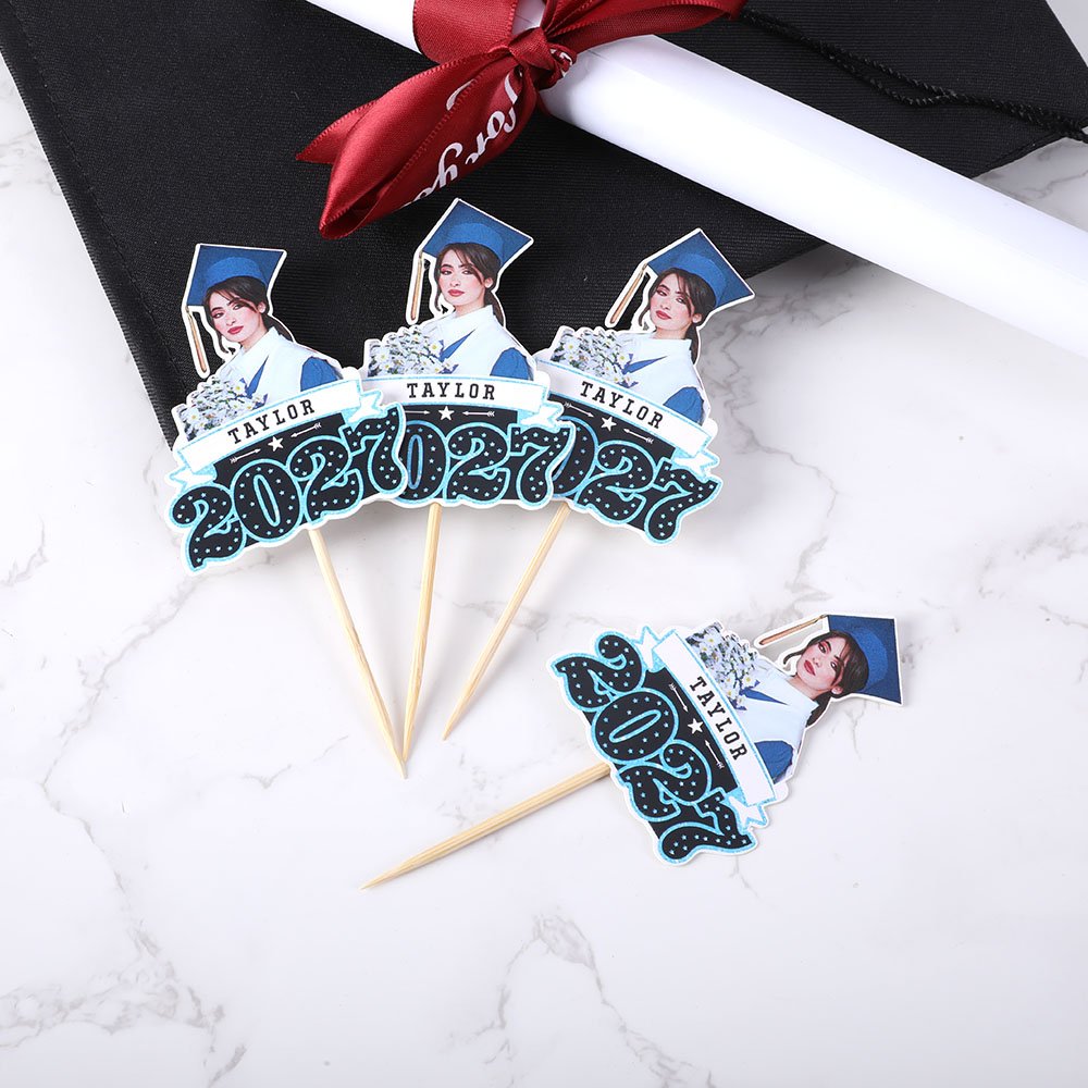 Elevate your graduation party treats with these amusing face photo cupcake toppers. Beyond featuring your photo, customize them with your name and graduation year, ensuring they're a unique addition to your celebration.