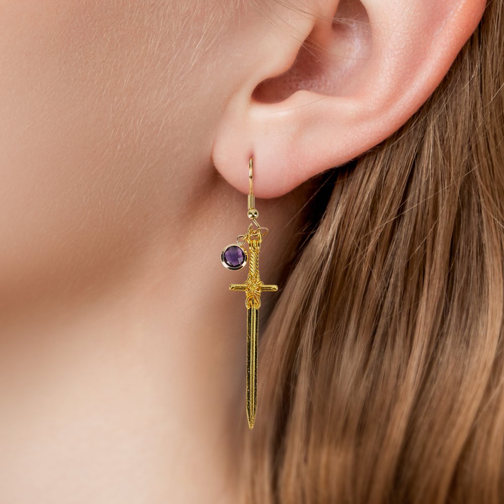 Crafted from premium materials, these earrings are durable, lightweight, and comfortable to wear without weighing down your ears. The exquisitely carved details and antiqued luster of the dragon and sword pendants complement the brilliance of the birthstones, making them a standout addition to any jewellery collection.