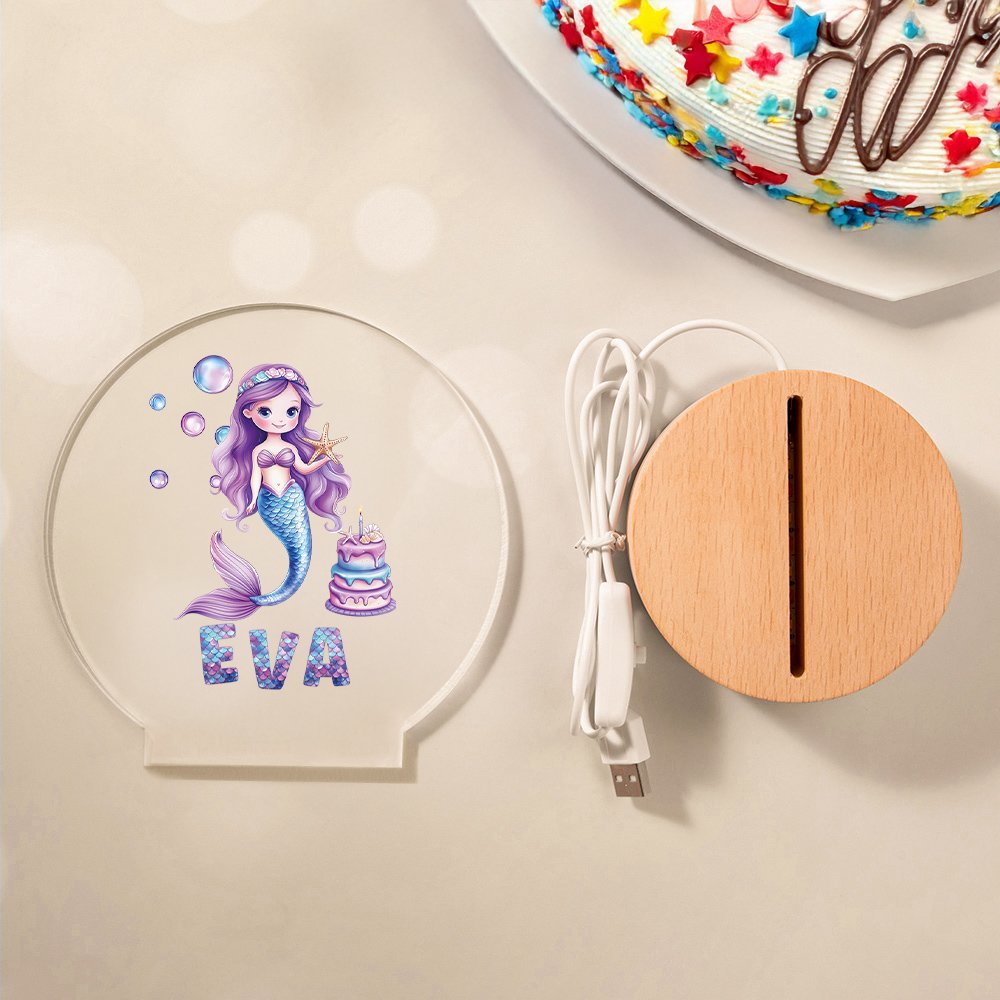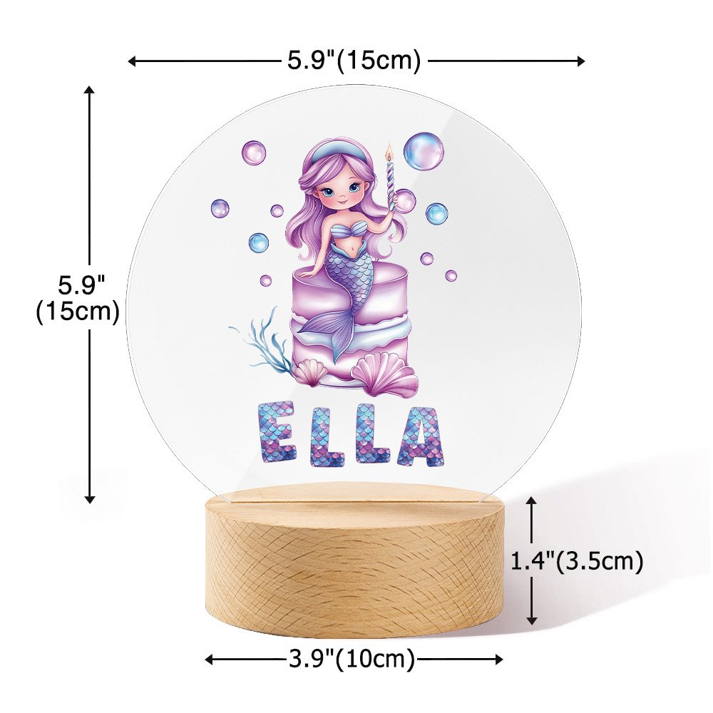 Personalised Fantasy Mermaid Cake LED Night Light with Wooden Base and Name Room Decor Birthday Gift for Girls Kids