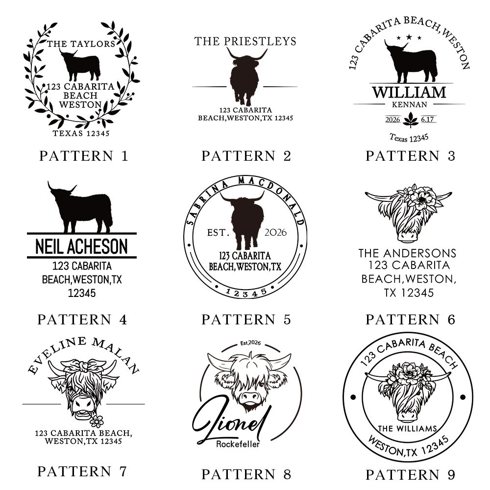 Get ready to add a touch of charm to your personal library or correspondence with our exquisite Highland Cow-themed Embosser Stamp! This unique design features 13 kinds of adorable highland cow patterns, making it a delightful addition to any book lover's collection.