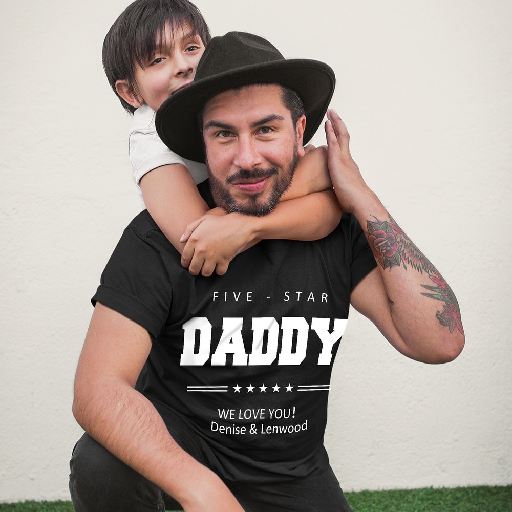 This "Five-Star" men's T-shirt stands out with its unique five-star design and customizable title and text. The bold five-star elements are paired with customizcreativelyable content, showing personality and affection, allowing you to customize a unique gift according to your needs, and show your unique love for your loved ones in a creative way.