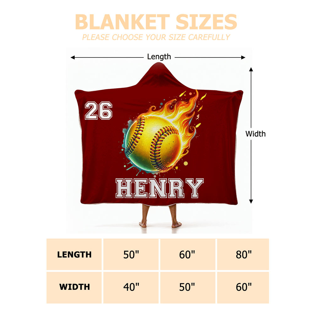 Personalised Flame Basketball Baseball Sports Pattern Soft Hooded Blanket with Name and Number Birthday Christmas Gift for Kids Family