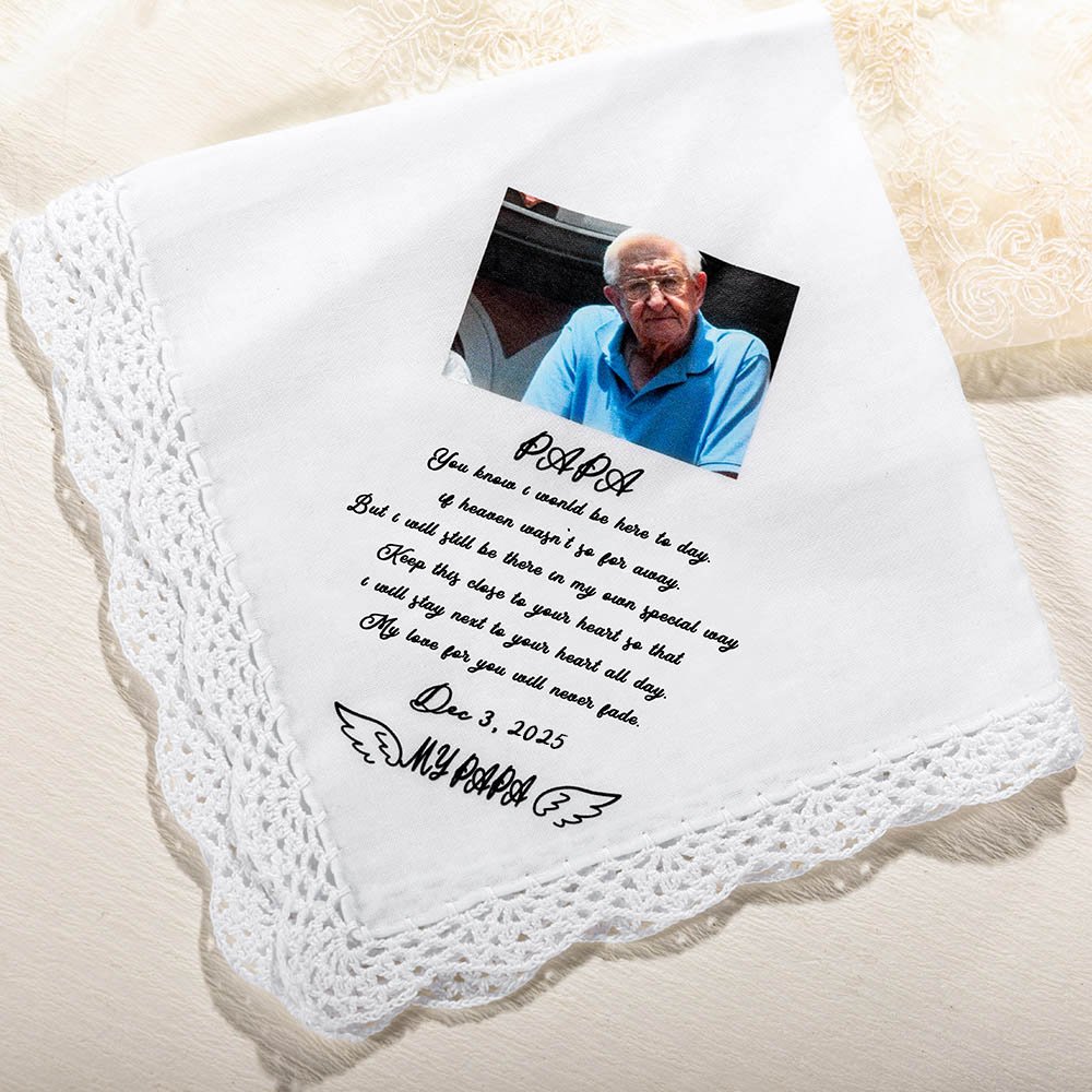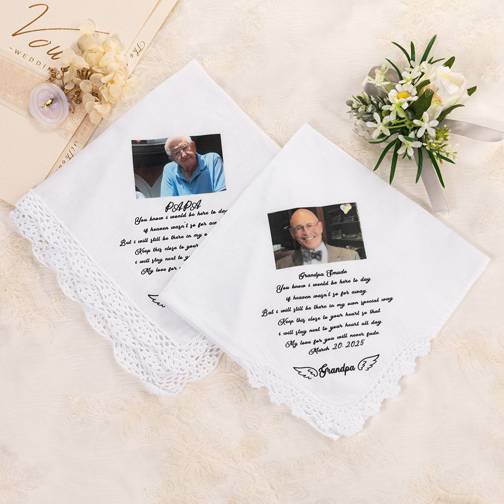 This handkerchief serves as a moving expression of love and remembrance for your departed loved one. It communicates the unspoken words of the heart, carrying with it the powerful sentiment that, though they are gone, they're forever with you.