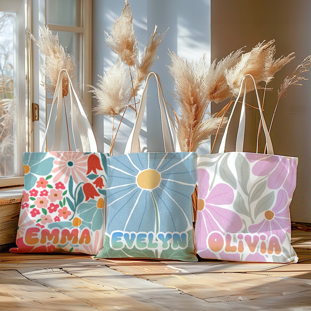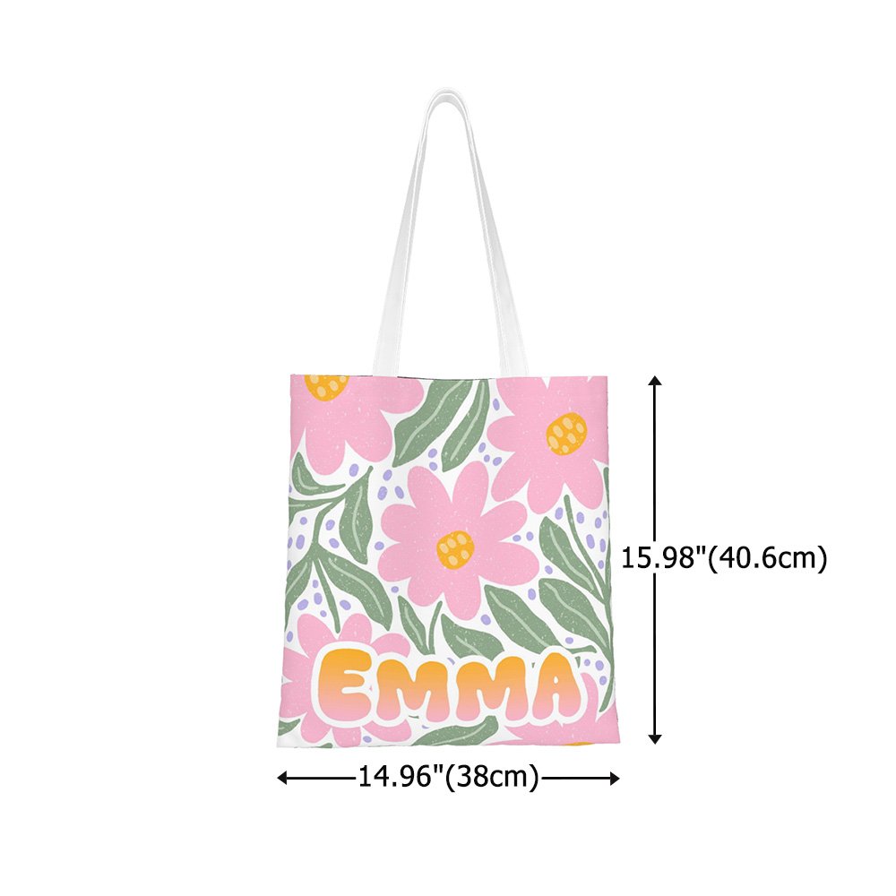 As a birthday or anniversary gift, this Personalised floral tote offers a thoughtful and practical present for women. It combines style, functionality, and a personal touch, making it an ideal gift for friends, family members, or colleagues. The combination of beautiful floral designs and name customization creates a gift that is useful and deeply appreciated, suitable for various occasions and personal styles.