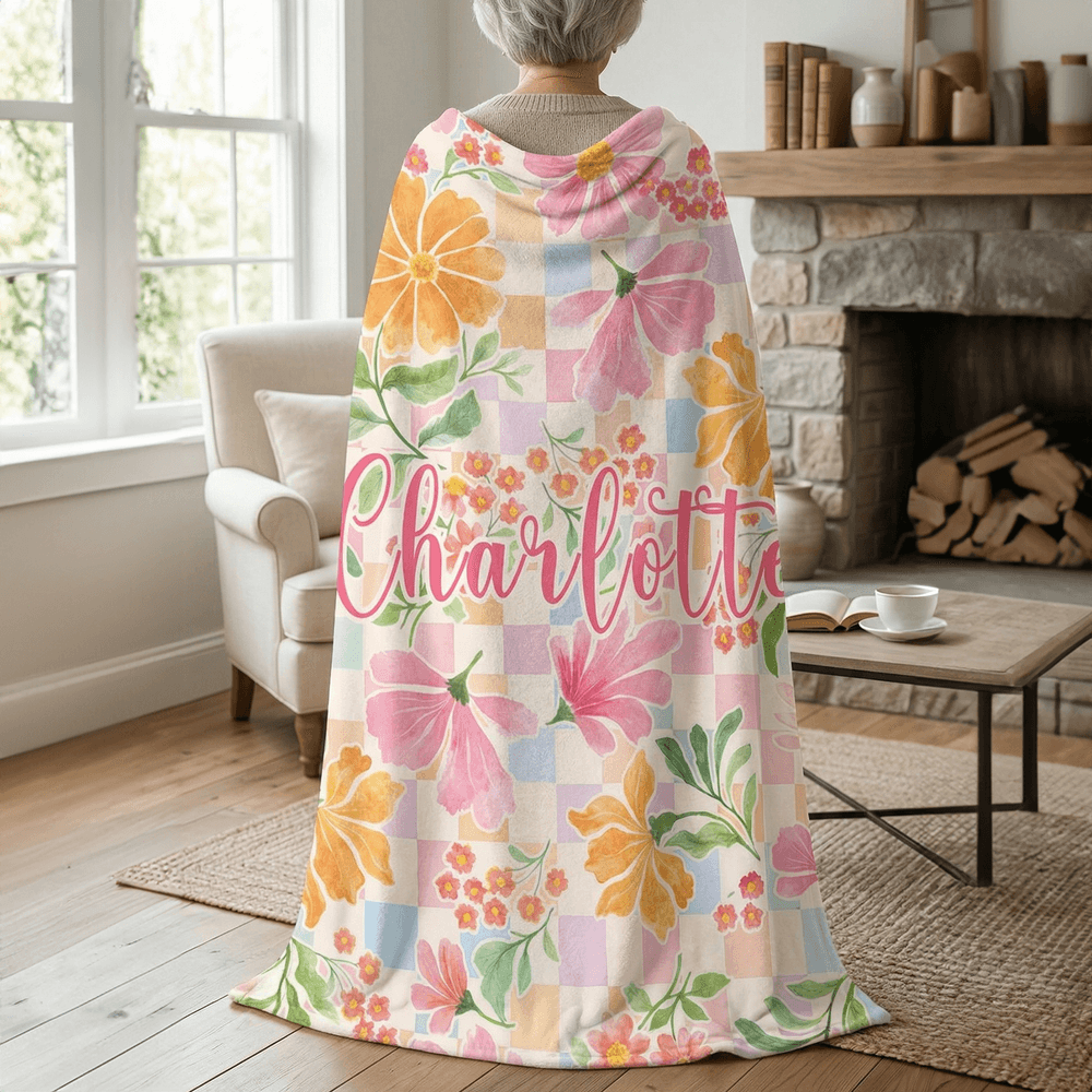 This design blends colourful checkerboard patterns with fresh floral elements, creating a bright and cheerful summer vibe with a lively and appealing style. It offers five font options and supports personalised name customization, allowing you to create a unique, one-of-a-kind piece that is both aesthetically pleasing and meaningfully commemorative.