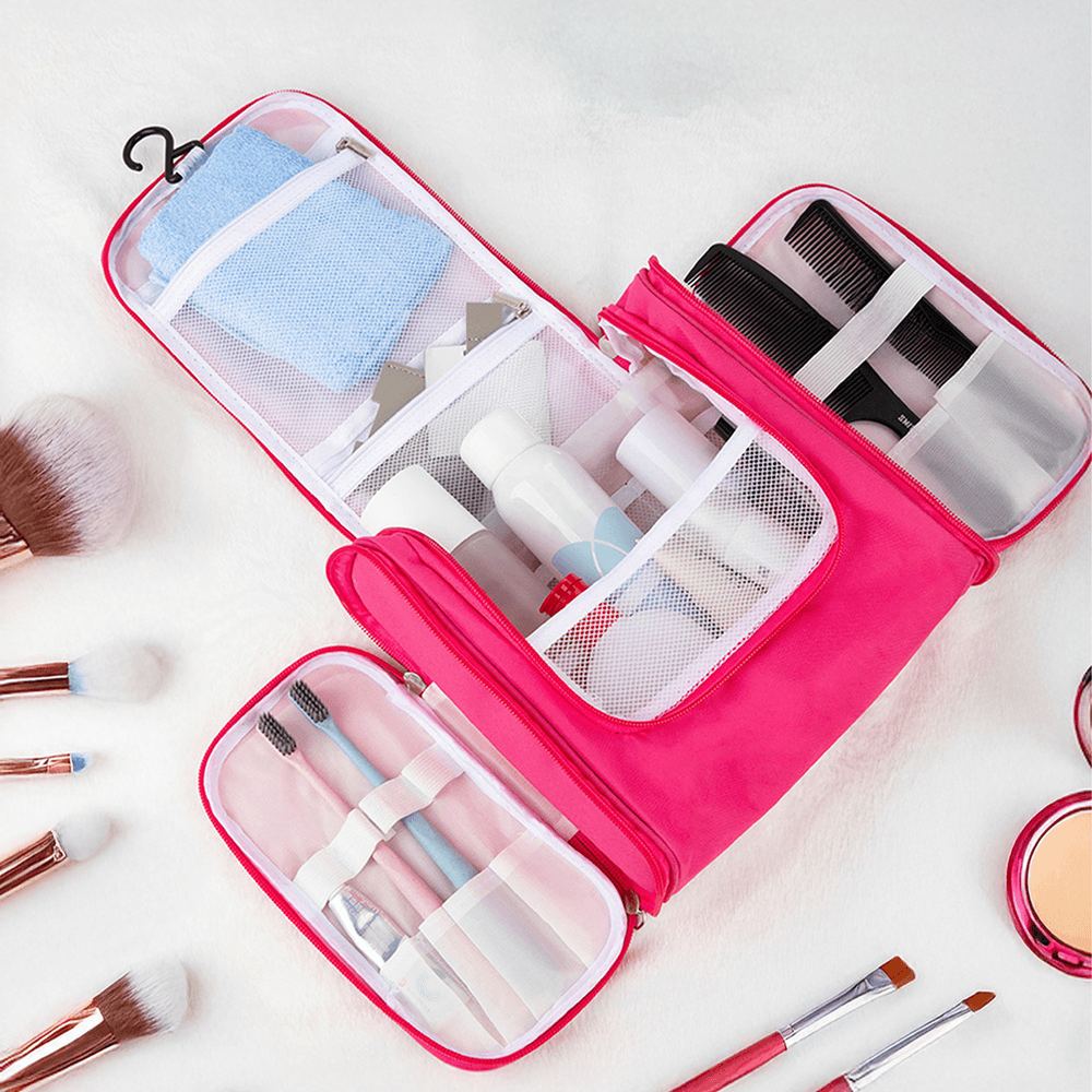 The spacious main compartment offers ample room for toiletries and personal items. Zippered side pockets are perfect for storing small necessities like toothbrushes and toothpaste. Built-in transparent grids facilitate easy organization and quick access to items, while the included mirror adds convenience for on-the-go touch-ups. A widened handle makes carrying easy, and a built-in hook allows for hanging the bag in a convenient location.