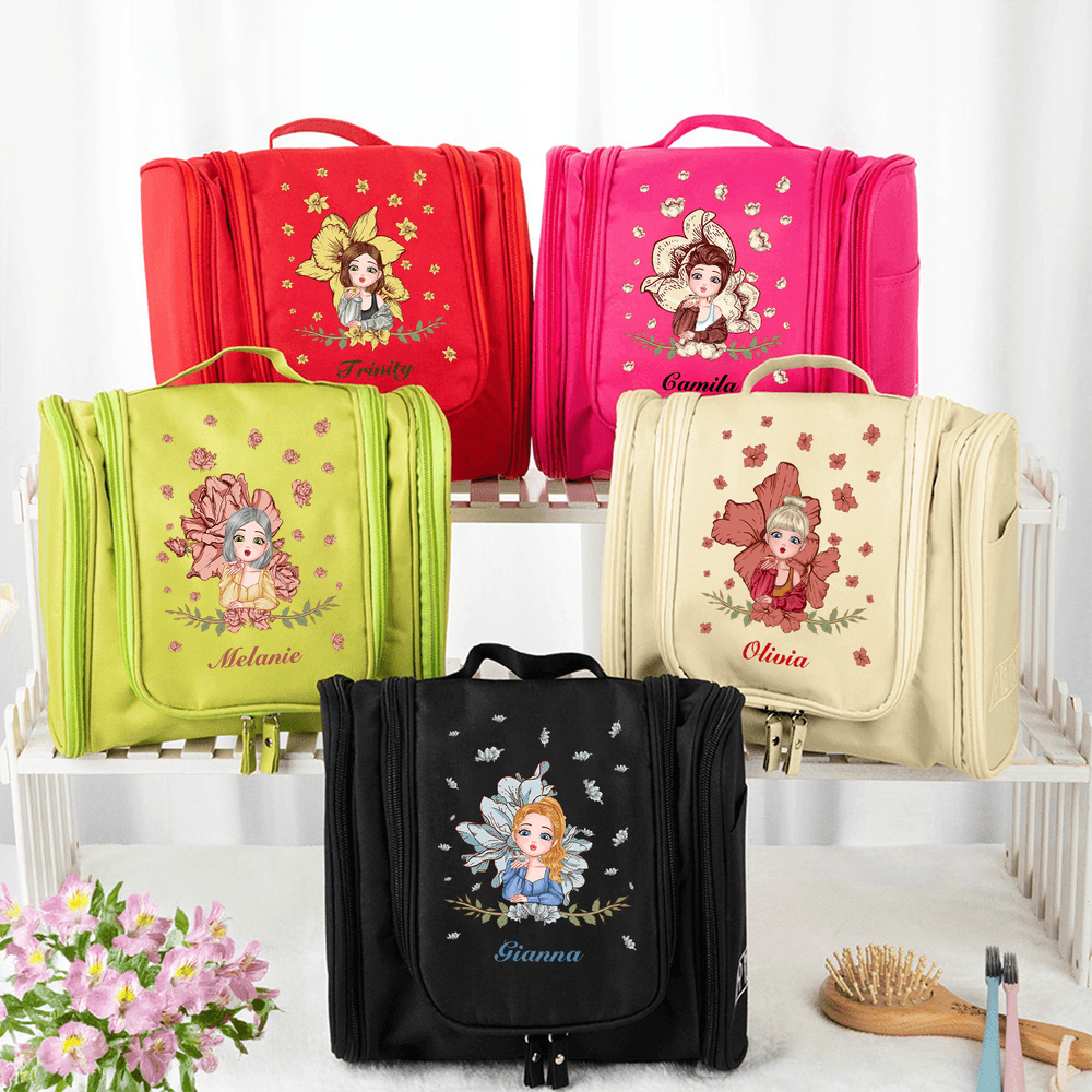 This charming toiletry bag features a whimsical cartoon girl surrounded by floating birthday flowers, adding a touch of joy and personalization. You can even customize it with your name, making it an extra special accessory. This delightful patch design not only makes storage fun but also encourages users to take pride in organizing their belongings.