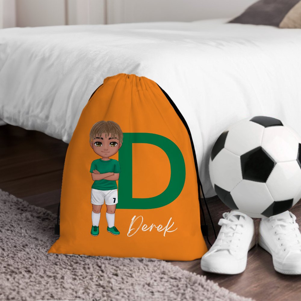 This drawstring backpack is designed for football lovers. Available in 23 colours, the bag is printed with vivid cartoon characters and football elements, which are colourful and full of vitality. You can customize the initials according to the name and choose the appropriate cartoon image to make each backpack unique and show your personality.