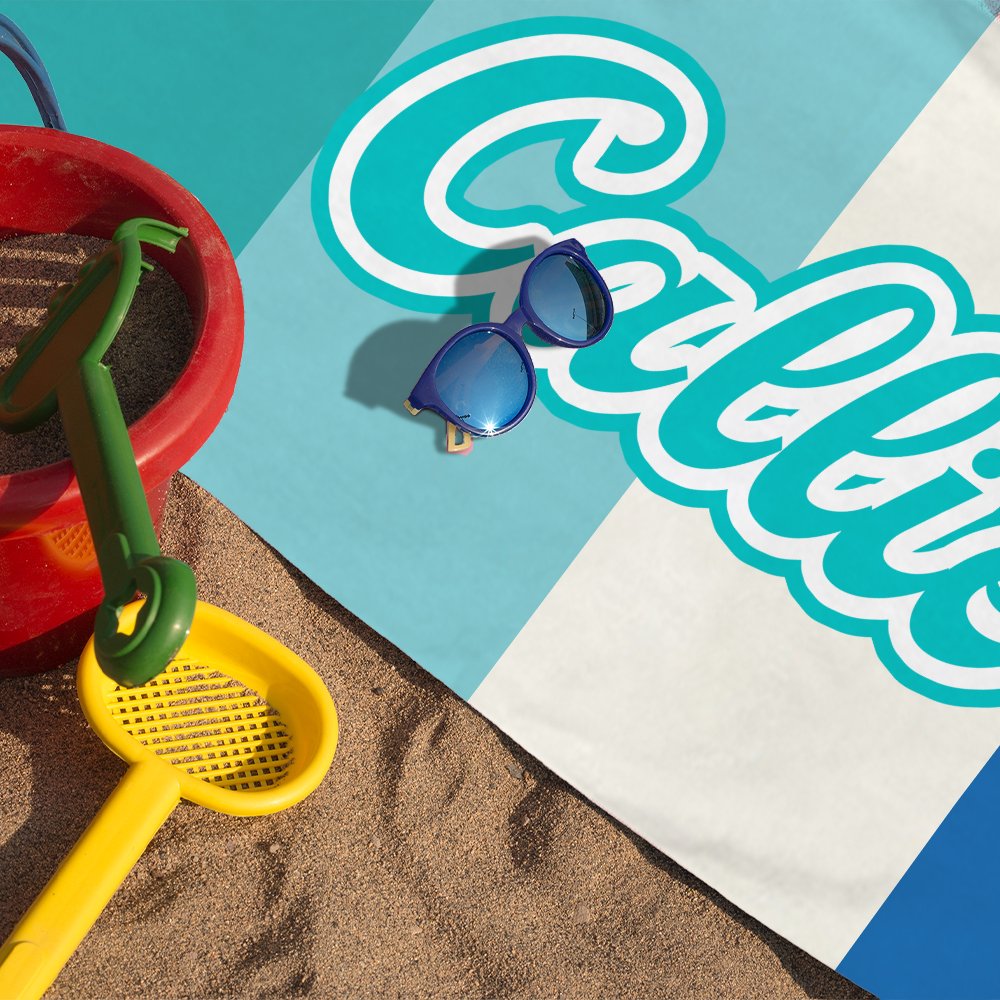 This beach towel features a unique contrasting colour design made of four different colours, creating a sharp visual contrast that gives people a sense of vitality and joy. The beach towel is printed with a customizable name in the centre, making it more exclusive.