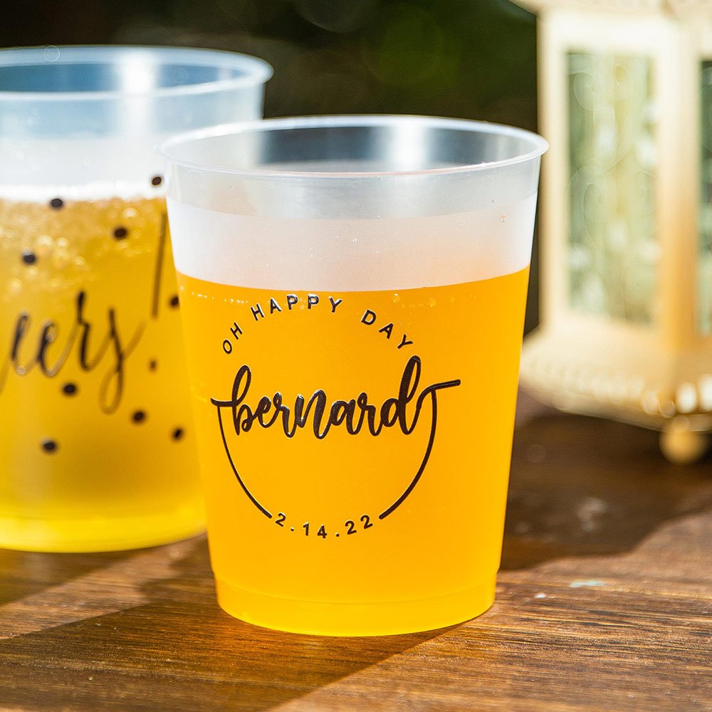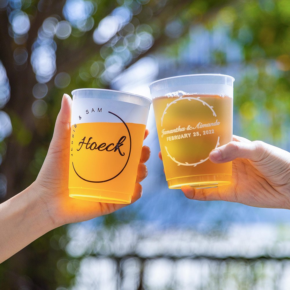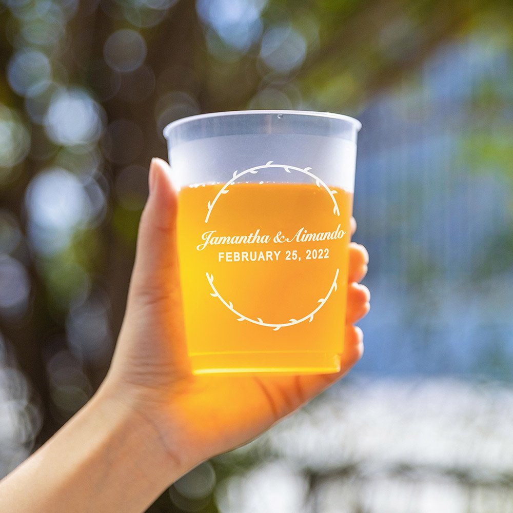 Our frosted plastic cups can be customized with the name of the bride and groom, along with the date of the special occasion. With the option to choose between 12oz or 16oz, you can select the size that best suits your needs.This personalization adds a unique to your bridal shower, making it an unforgettable experience for everyone involved. Each cup will serve as a keepsake for your guests, reminding them of the joyous celebration whenever they revisit it.