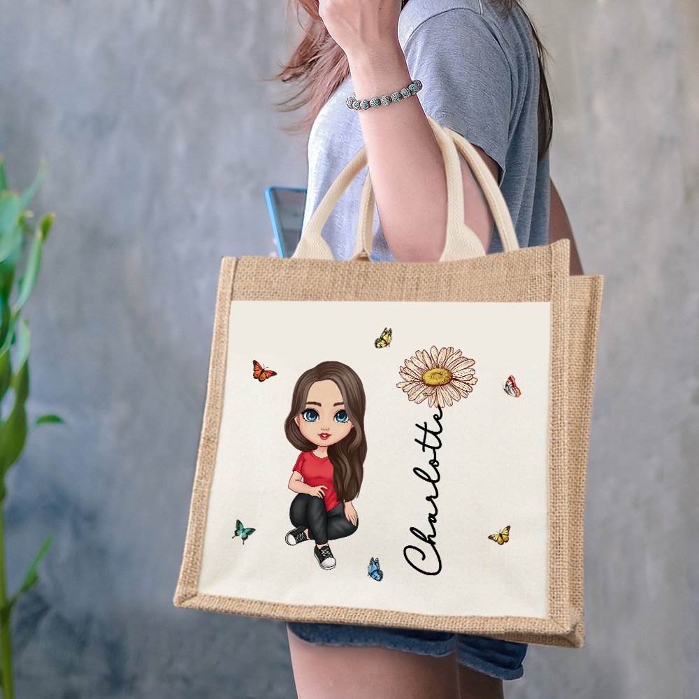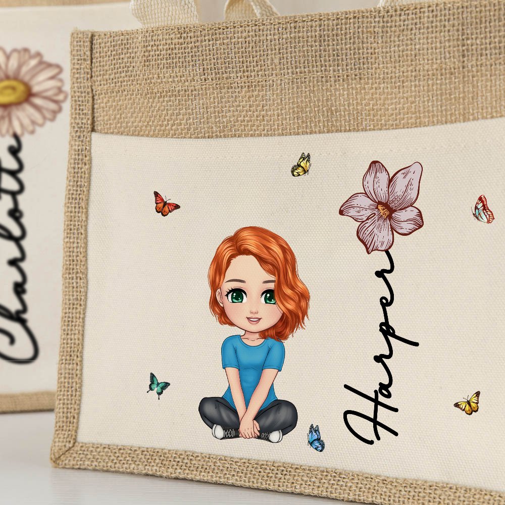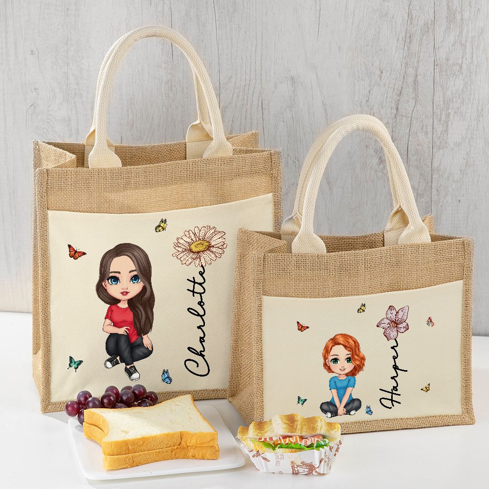 This jute bag features the ability to customize the character. We offer 6 age and gender characters for you to choose from. You can customize your character according to the image of yourself or your family and friends, choose the corresponding birthday flower, add your name, and create a unique lunch bag.