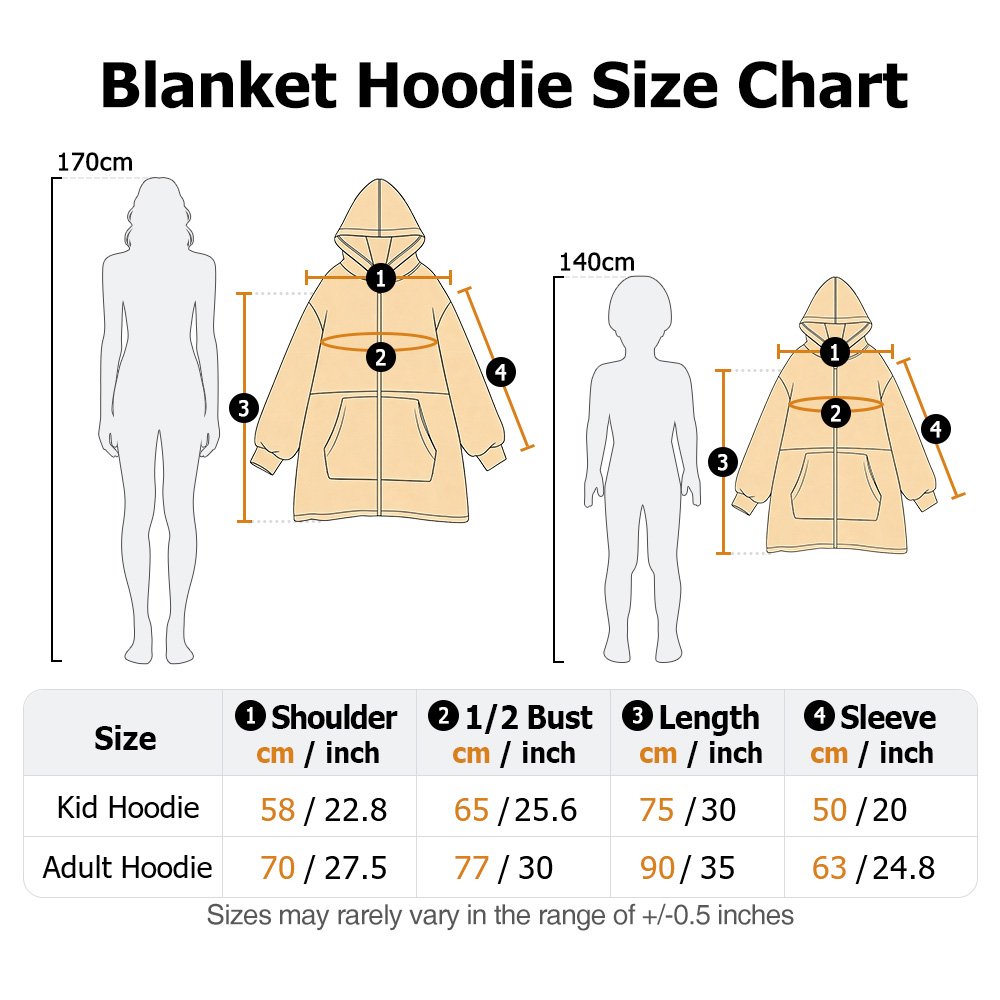 | Measurement: | Kids Hoodie - Shoulder Width - 22.8"(58cm), Half Chest - 25.6"(65cm), Length - 30"(75cm), Sleeve Length - 20"(50cm) Adult Hoodie - Shoulder Width - 27.5"(70cm), Half Chest - 30"(77cm), Length - 35"(90cm), Sleeve Length - 24.8"(63cm) |