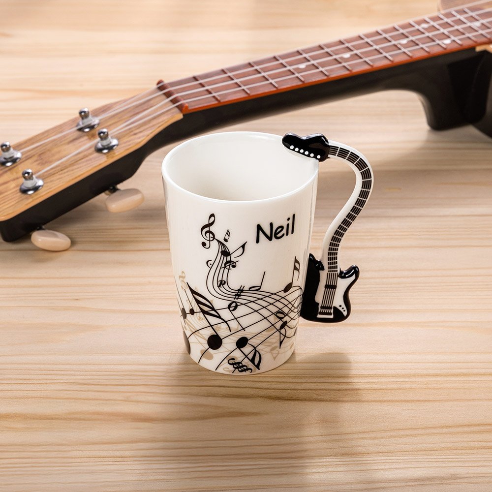 This mug is designed in a creative guitar shape and is available in two styles guitar shape and guitar handle. The main body of the mug can be customized with a name. The overall design is practical and beautiful, perfectly combining Personalised elements with fashion sense.