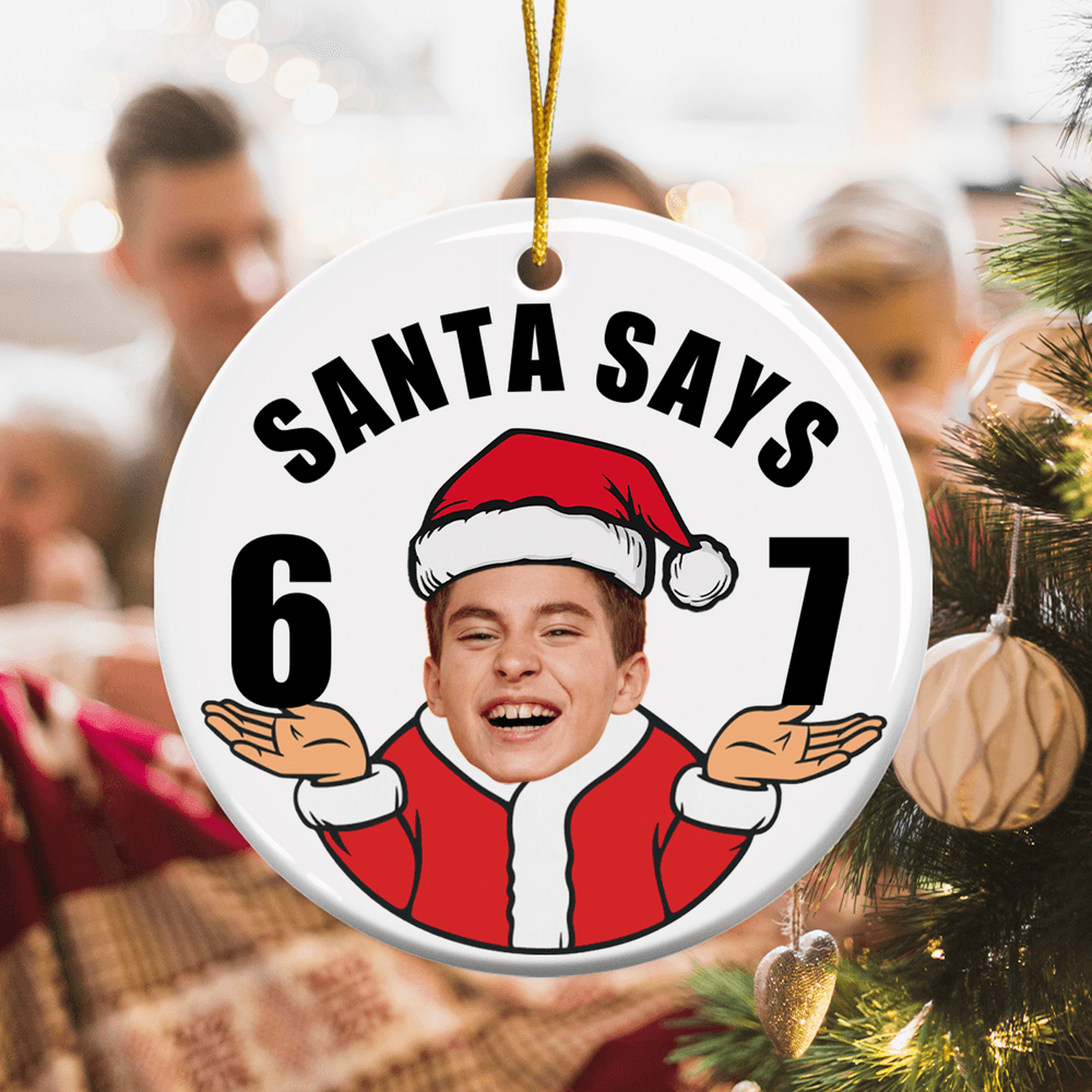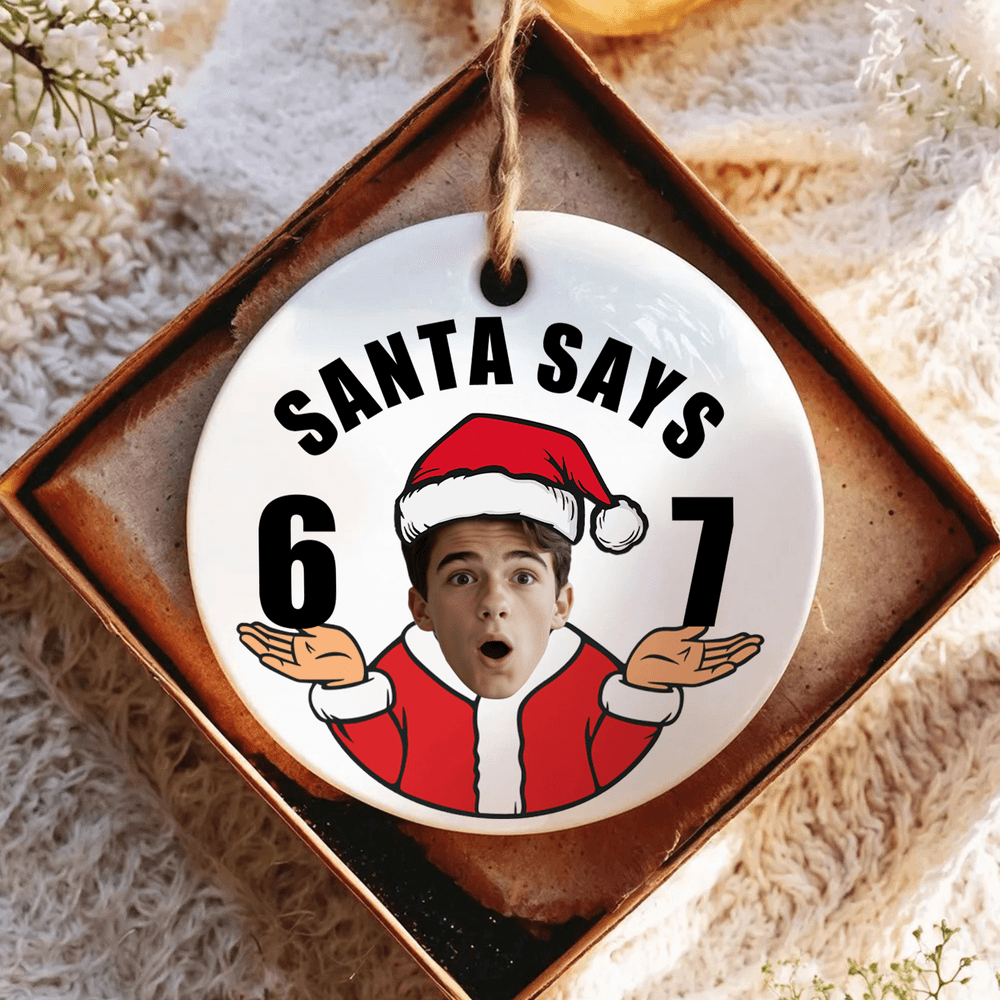 Inspired by the phrase “SANTA SAYS” and the popular “six seven” meme, this ornament allows you to personalise it with a fun custom portrait. Create the season’s most eye-catching decoration and turn yourself or a friend into a Christmas showstopper.