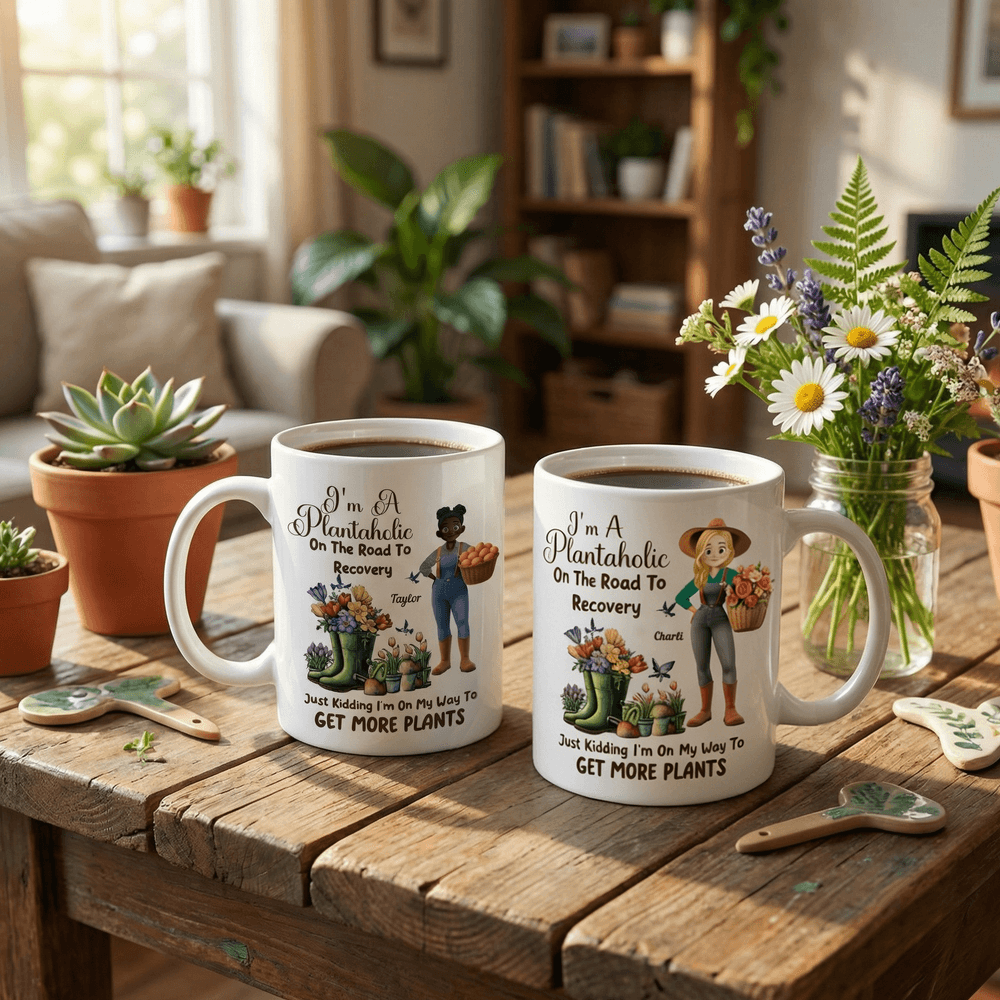 With gardening culture as its core theme, this mug incorporates cartoon clipart elements inspired by gardening enthusiasts and supports personalised name customization, blending the joy of gardening with individual needs.