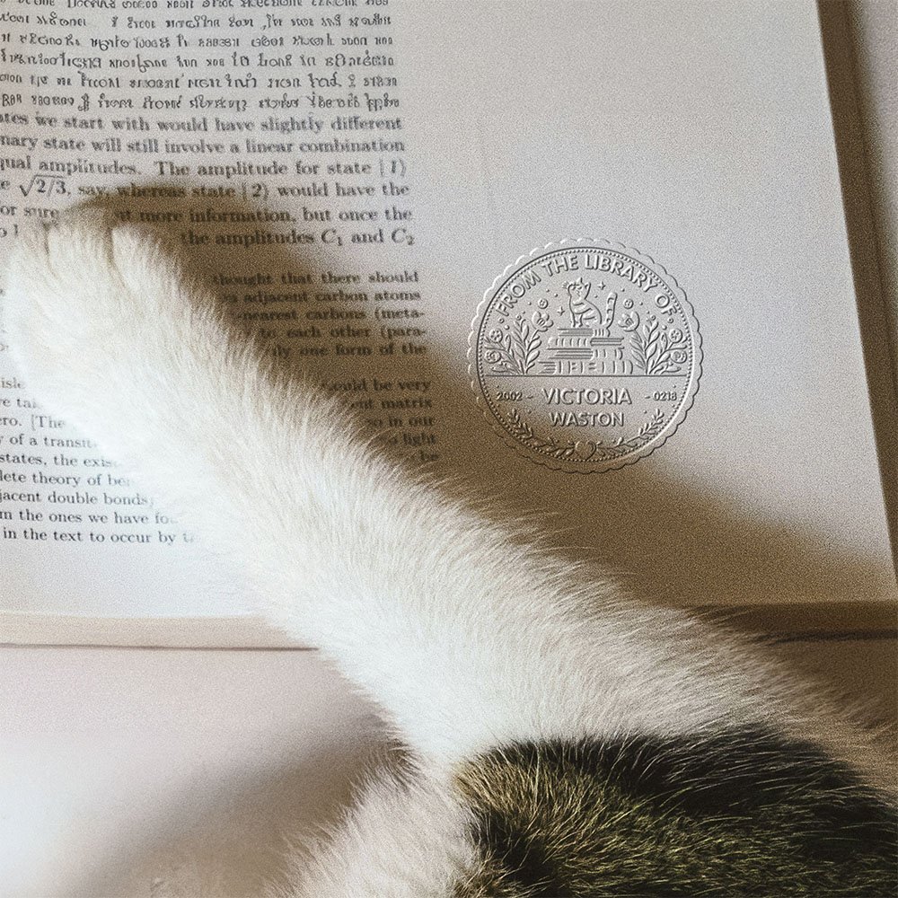 Make a statement with a Personalised touch! This embosser allows you to add your name, date, or a special message to signify uniqueness. This delightful embosser captures the essence of the bond between a girl and her feline friend, immersed in the joy of reading amidst a backdrop of charming florals. It adds a whimsical and endearing touch, making it an ideal gift to celebrate the love for reading.