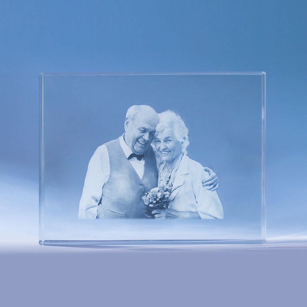 Personalised Golden Anniversary 3D Crystal Photo Engraved Gift