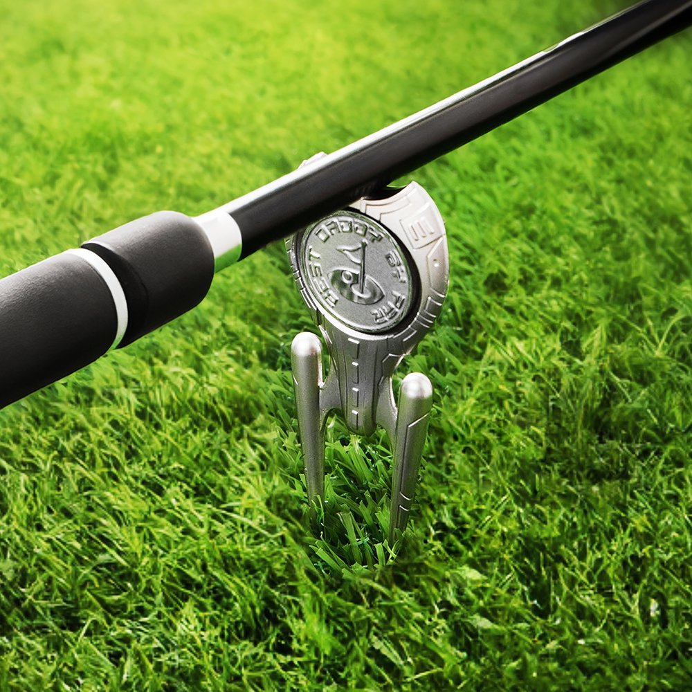 The top of the golf divot repair tool has a groove that can be used to support golf clubs. The carefully crafted slot provides a stable resting place for the clubs, preventing them from falling over and getting damaged. This feature adds an extra layer of convenience, especially when taking breaks between shots or playing with multiple clubs.