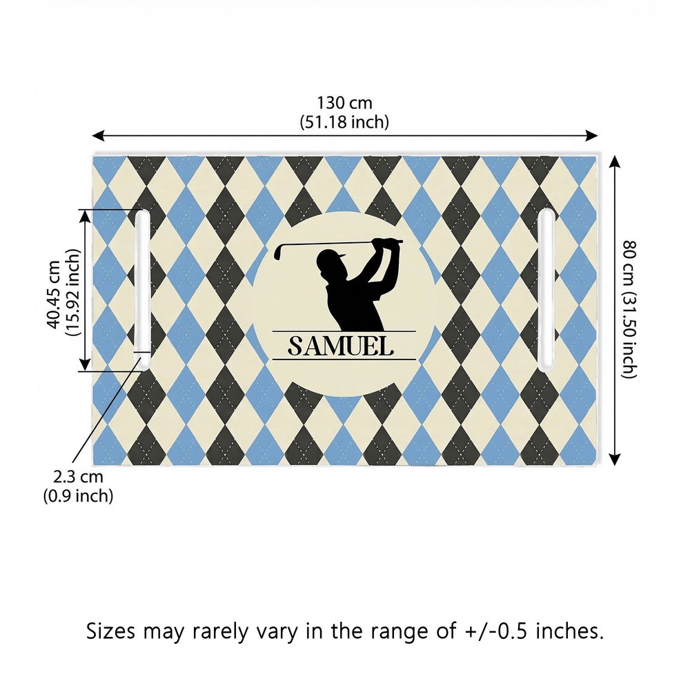 This seat cover features a classic checkerboard pattern and offers a variety of design options, including golf balls and clubs, to showcase your passion for the sport. It can also be customized with your name and initials, making it a truly unique keepsake.