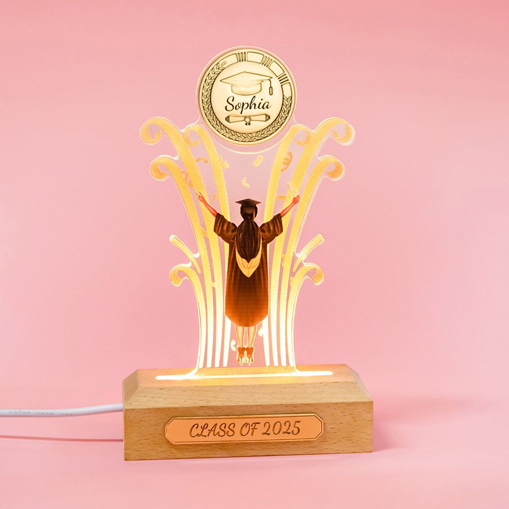 Personalised Graduation LED Night Light with Wood Base Souvenir Ornament Gift for College or High School Graduates