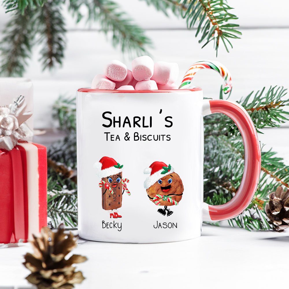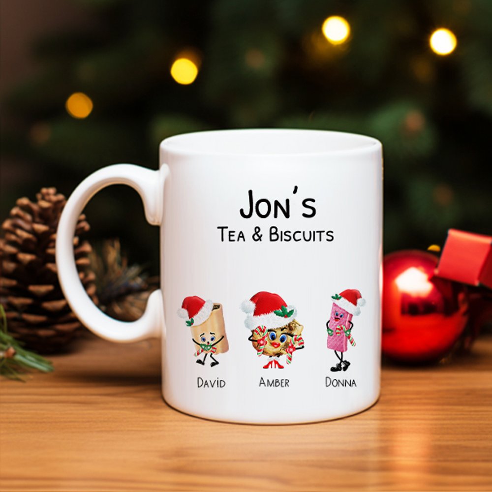 Personalised Grandparent's Christmas Biscuit Characters 11oz Ceramic Mug with Grandkids Names Christmas Birthday Gift for Grandparent