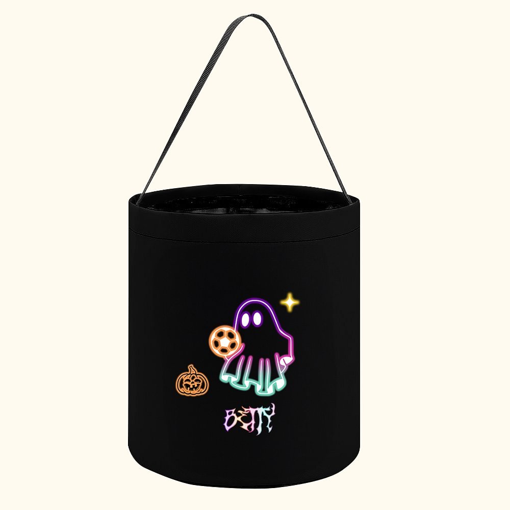 This vibrant Sweets bag features eye-catching neon ghosts and pumpkins, embracing the playful spirit of Halloween. Its artistic design creates a joyful atmosphere for parties and makes for a fun accessory during trick-or-treating.