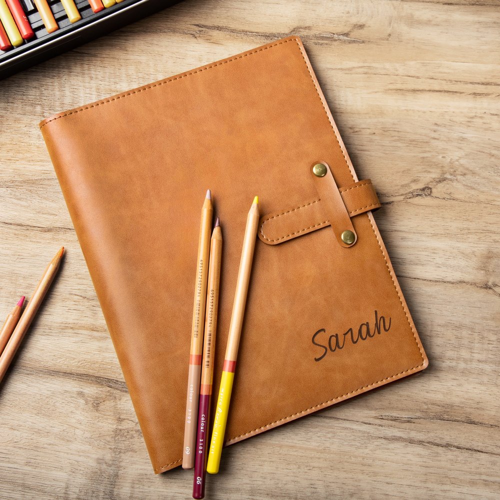 Personalised Handmade Leather Traveller's Refillable Sketchbook Cover Pencil Organizer Gift for Painters Students
