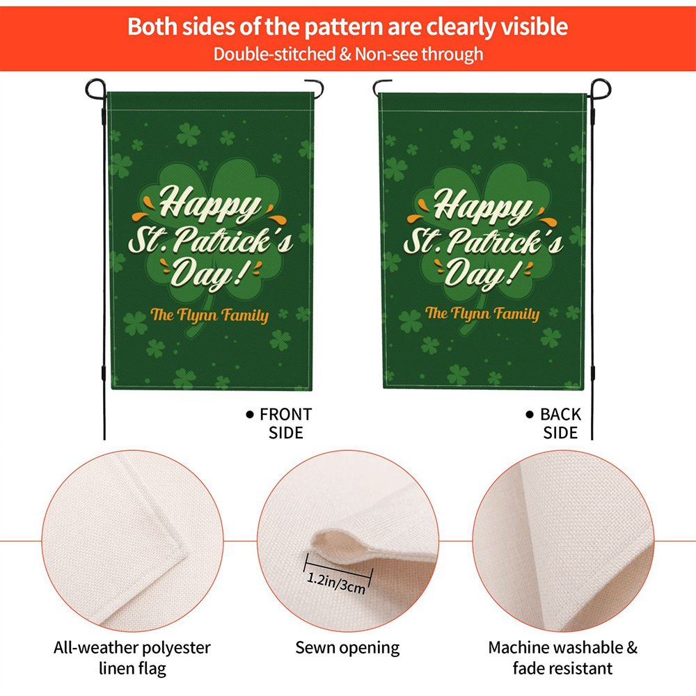 Personalised Happy St Patrick's Day Double-Sided Welcome Garden Flag with Text Lawn Decoration Gift for Family