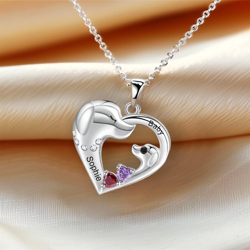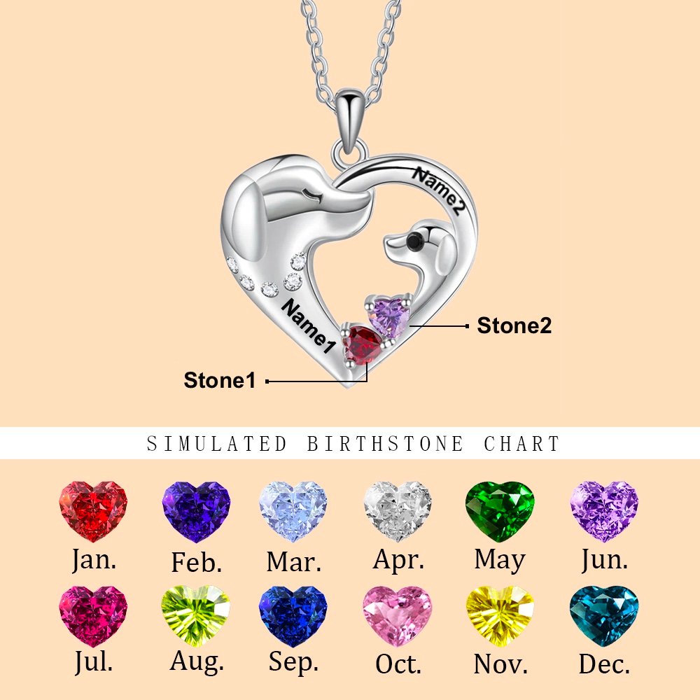 This necklace is made up of two dogs in the shape of a love heart, and paired with a sparkling heart-shaped birthstone, it is very attractive. A large and small dog symbolizes the family relationship between mother and child, and the love birthstone represents endless love. This necklace symbolizes the bond between mother and baby. You can choose the birthstone according to the birth month and customize the name on the necklace to make it more special. Necklaces are great to wear in different colours and types of skirts, dresses, blouses, etc., ensuring you stand out from the crowd.