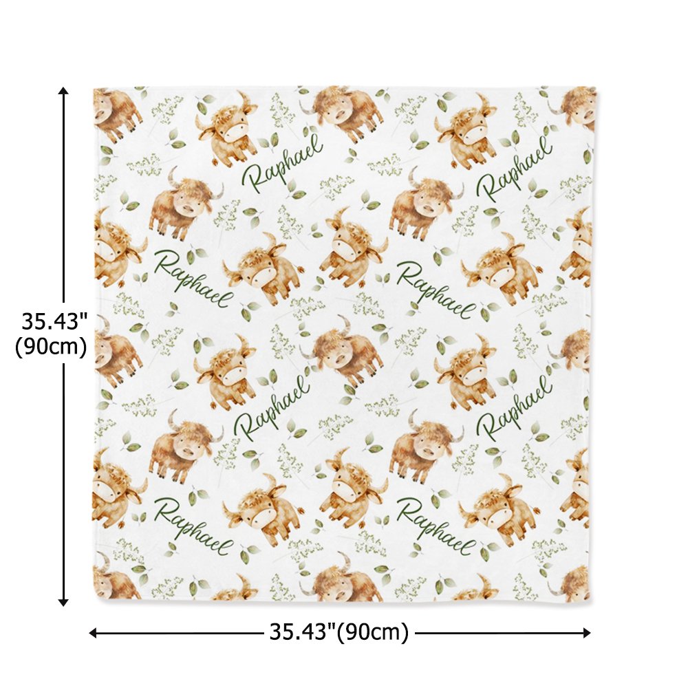 This blanket features a healing style and warm tones, filled with elements of cute Highland cows and leaves, creating a charming green farm. You can add your child's name to the blanket, and this unique design element adds a touch of charm, making it a delightful home essential for any occasion.