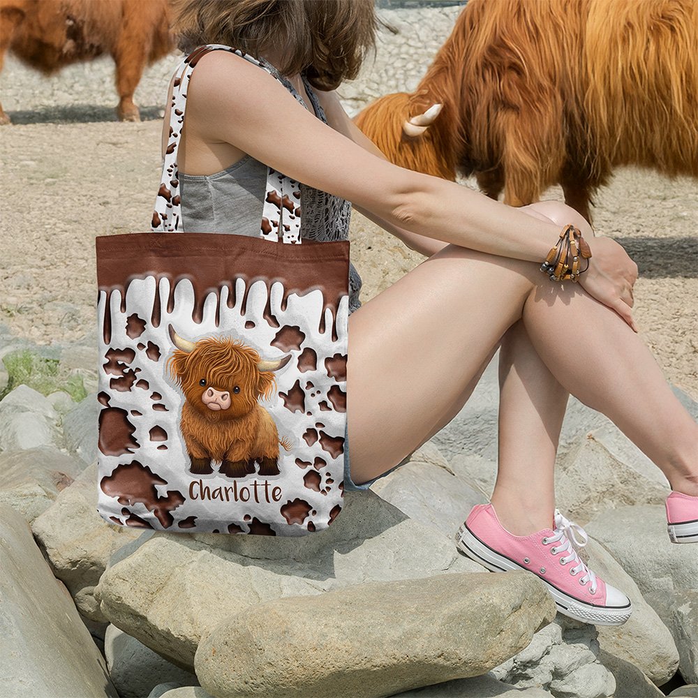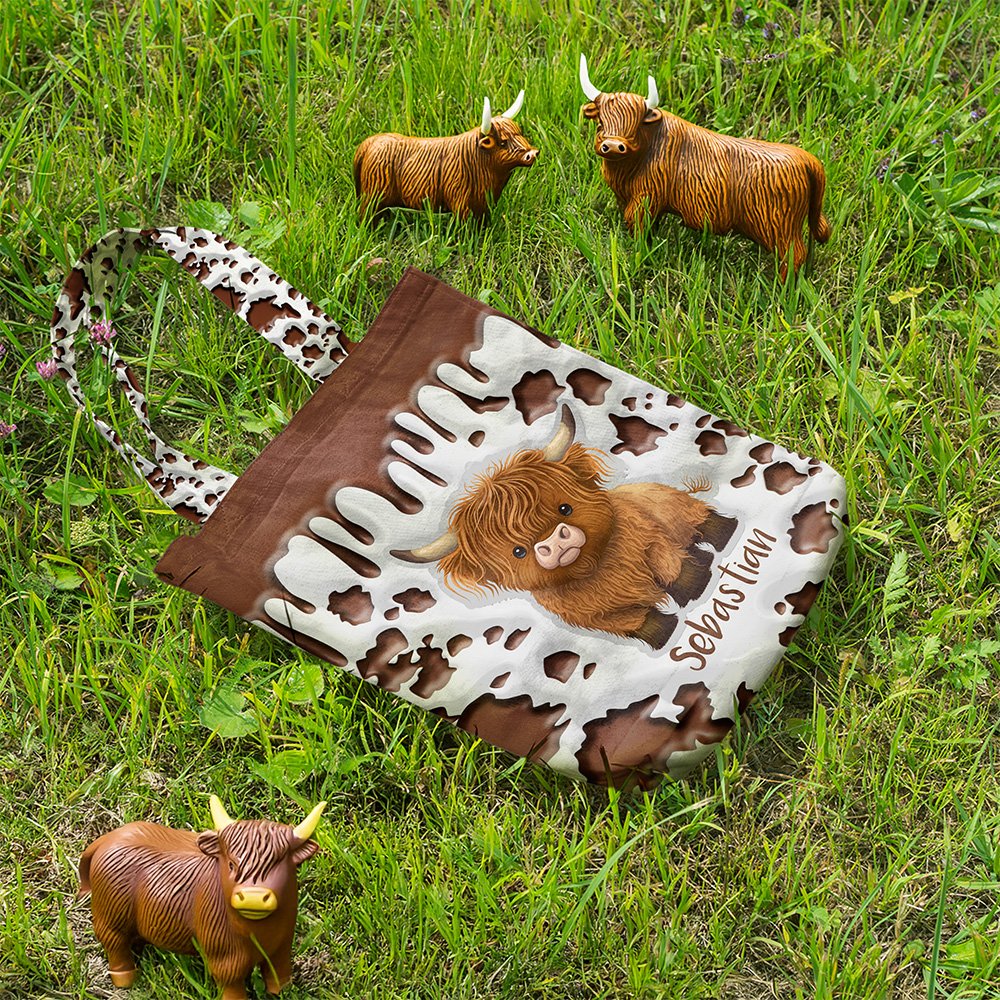 This bag features a super cute Highland Cow pattern, combining practicality and charm. The Highland Cow design provides a soft, furry visual texture, making it highly appealing to women. Additionally, the bag offers Personalised name customization. Simply enter your name, and you can create a unique, one-of-a-kind accessory.