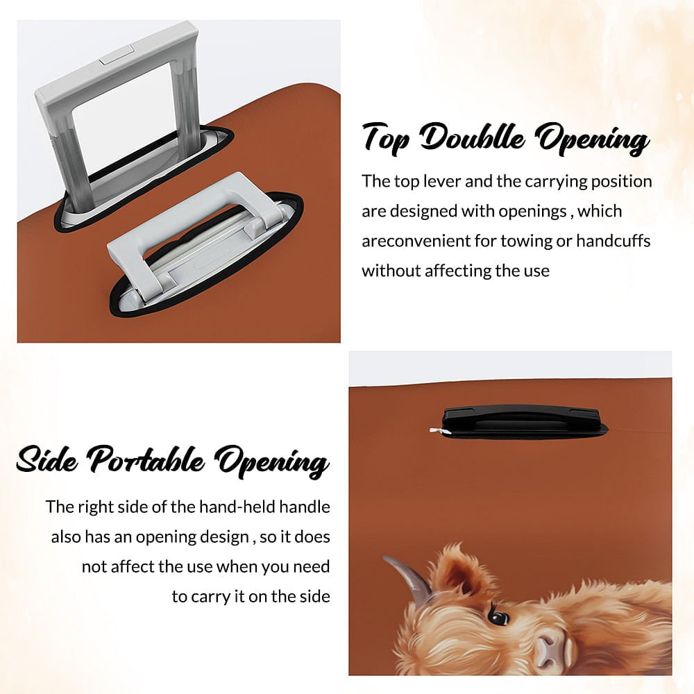 Featuring an adorable and exclusive cute highland cow design, this luggage cover adds a touch of fun and personality to your travel essentials. This cover can be Personalised with your name and have multiple colour options available, making it uniquely yours and helping prevent mix-ups.