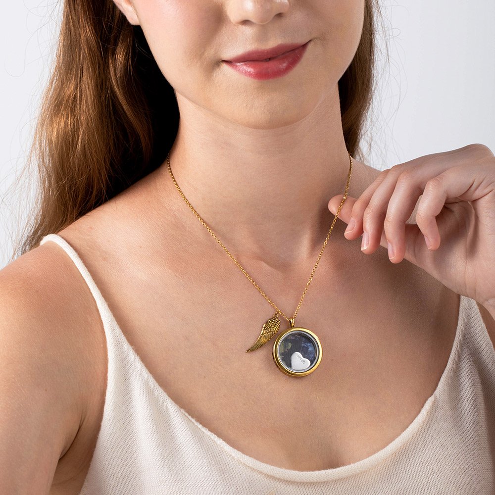 Round box pendant design is beautiful and generous, you can add your favorite pet's photo and name. Angel wings charm that expresses the thoughts in your heart, and commemorates the pet that has accompanied you for a long time. The round box pendant itself has a strong magnetic closure, easy to open and close, simple to operate, and safe to keep your pet's hair or any other small decorations of your beloved.